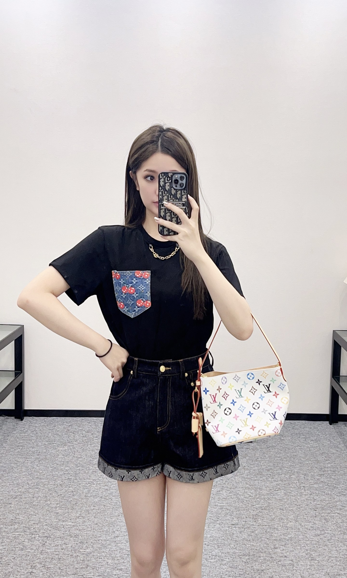 為您推薦最新一季潮流單品,設計時尚、實用性高。這款LV女款高仿T恤結合櫻桃印花牛仔口袋與鏈條點綴,呈現品牌經典趣味與街頭感,布料柔軟親膚,適合日常穿搭。客人評價指出「實品質感超預期,版型修身不緊繃」,輕鬆打造休閒高級Look,無論搭配牛仔褲或裙裝都能完美駕馭。
