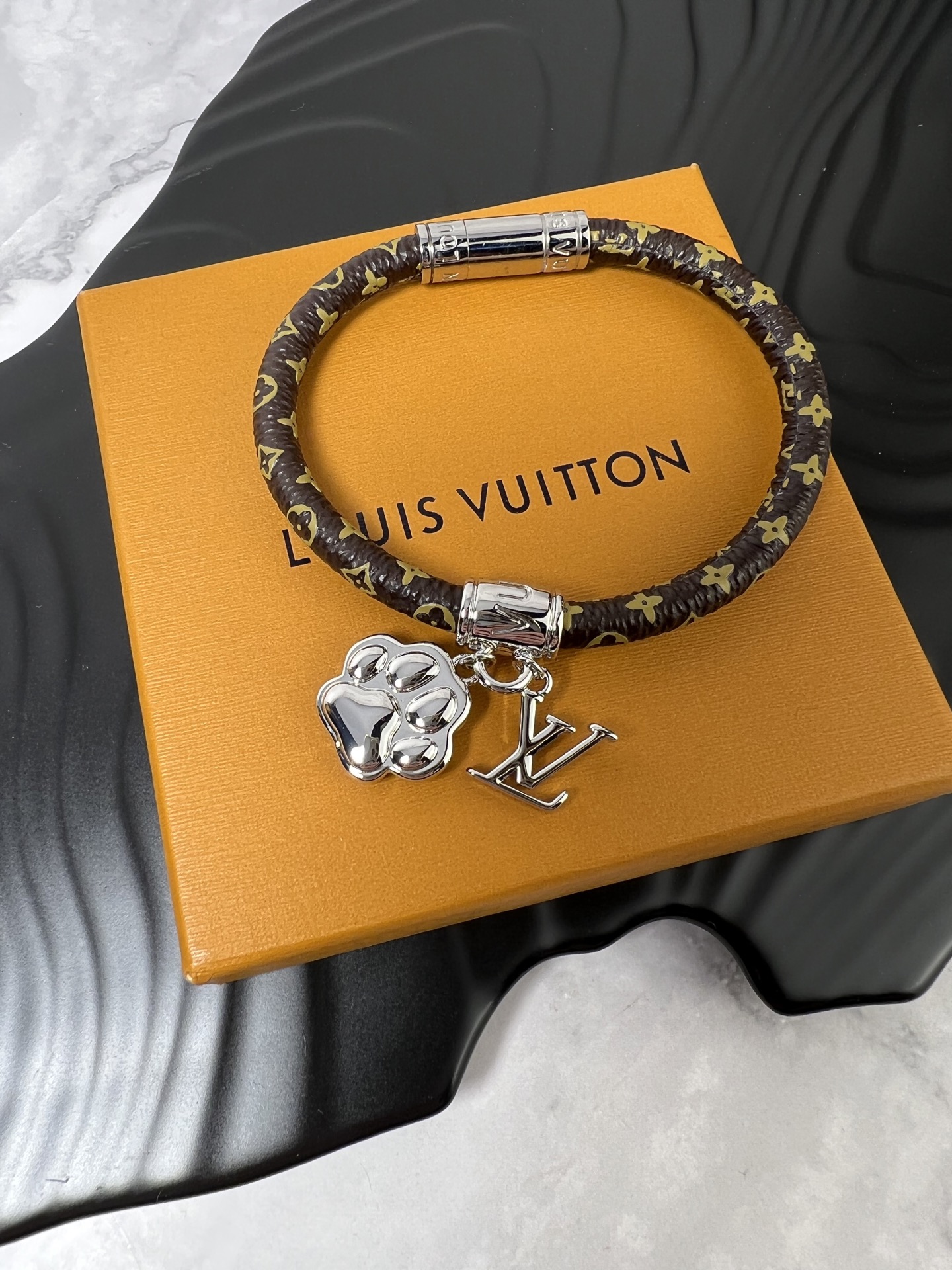 精選來自人氣熱銷款式,搭配性極高,不論男女皆適合。此款 LV 高仿 Monogram 皮繩手環,以經典 Monogram 花紋皮革包覆圓形皮繩,質感細膩且耐用。搭配銀色 LV Logo 與立體爪印吊飾,增添趣味與品牌辨識度。磁吸式扣環設計方便穿戴且穩固不鬆脫,適合日常佩戴或作為禮物。顧客回饋「細節與專櫃款幾乎無差異,佩戴感舒適且造型亮眼」。