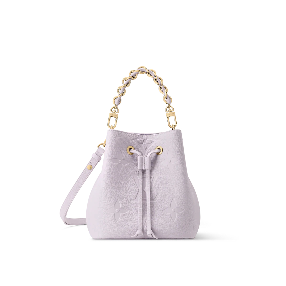本頁精選來自本季熱賣款式,擁有不挑人的版型與簡約風格。這款LV高仿女款水桶包選用薰衣草紫柔軟皮革,搭配立體壓紋Logo與金鍊編織手提帶,整體色調優雅細緻。束口設計提升使用安全性,內層空間實用,附可調式長背帶,手提、肩背皆宜。此款是春夏穿搭的加分配件,風格時尚又不失穩重,特別適合氣質型與都會風女性使用。
