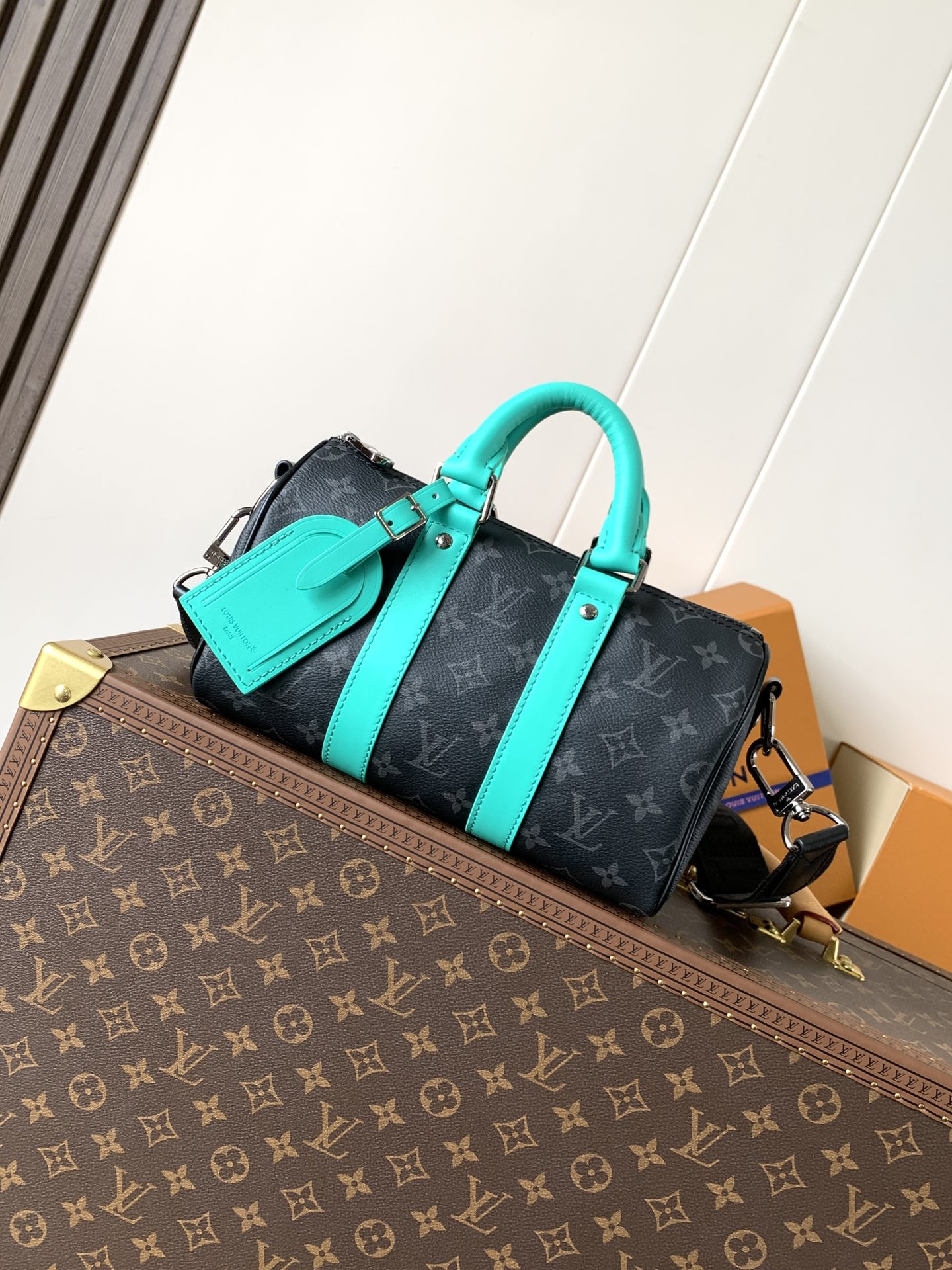 這款LV高仿Nano Keepall手袋以精緻黑灰Monogram帆布製成,點綴亮眼綠色皮革飾邊,吸睛又不失格調。迷你尺寸卻保有經典Keepall設計語彙,斜背或手提皆宜,十分適合日常穿搭與出遊使用。內部容量剛好放下手機與隨身小物,做工細節精緻,整體高還原度深受客人好評。