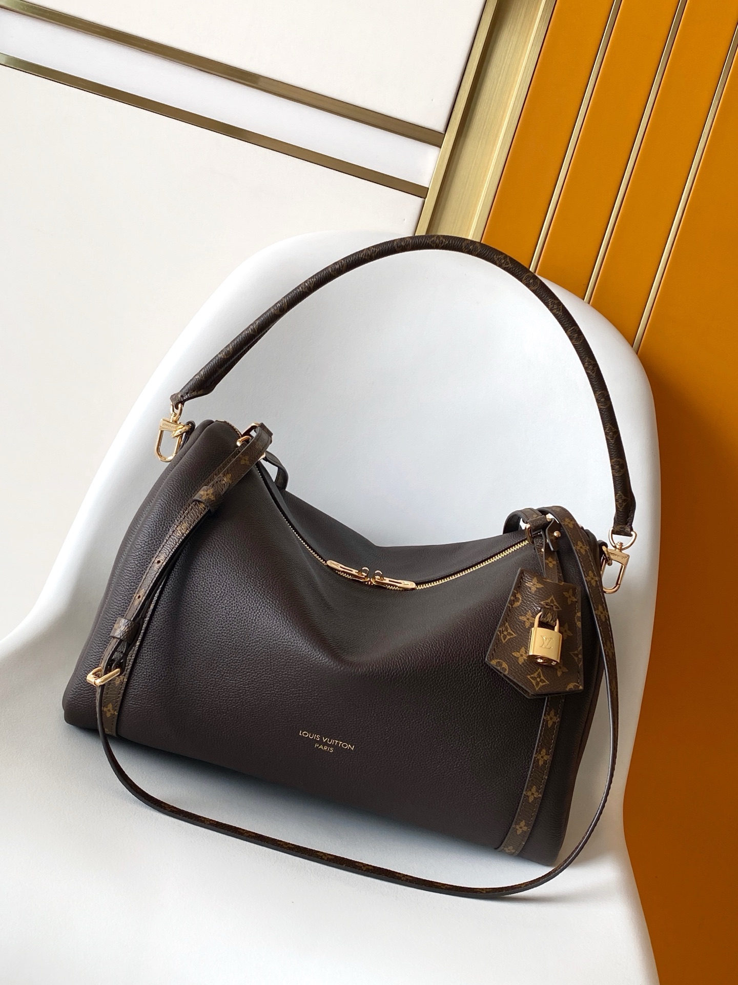 此款 LV 高仿深棕單肩包採用細緻荔枝紋牛皮,搭配經典 Monogram 細節與金色掛鎖飾牌,彰顯低調奢華。寬敞的包身空間可輕鬆容納日常隨身物品,配有可調節長肩帶與舒適提把,兼具實用性與時尚感。無論是通勤、旅行或休閒場景,都能以大氣質感展現輕奢生活品味,品質對標專櫃。
