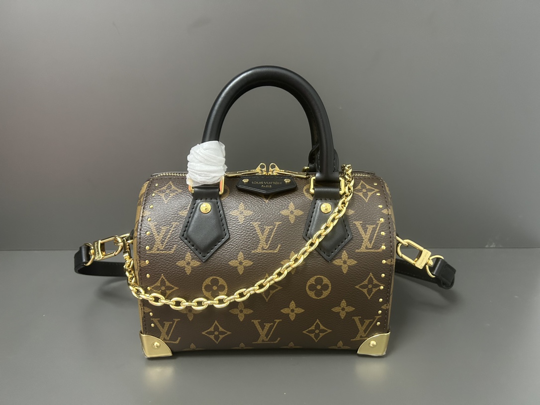 本商品採用高質感材質打造,細節考究、整體線條利落。這款LV高仿M13146 Monogram鏈條手提包,以經典老花帆布搭配黑色皮革手柄與金屬鏈條,展現奢華質感。包身小巧卻容量實用,適合日常通勤與休閒出行。客人回饋「包款外觀精緻,搭配效果優雅,朋友都誤認為專櫃正品」,獲得極高好評。五金光澤感強烈、拉鍊順暢,內裡設計貼心,細節完成度極佳。是一款兼具時尚與實用的經典精品手袋。