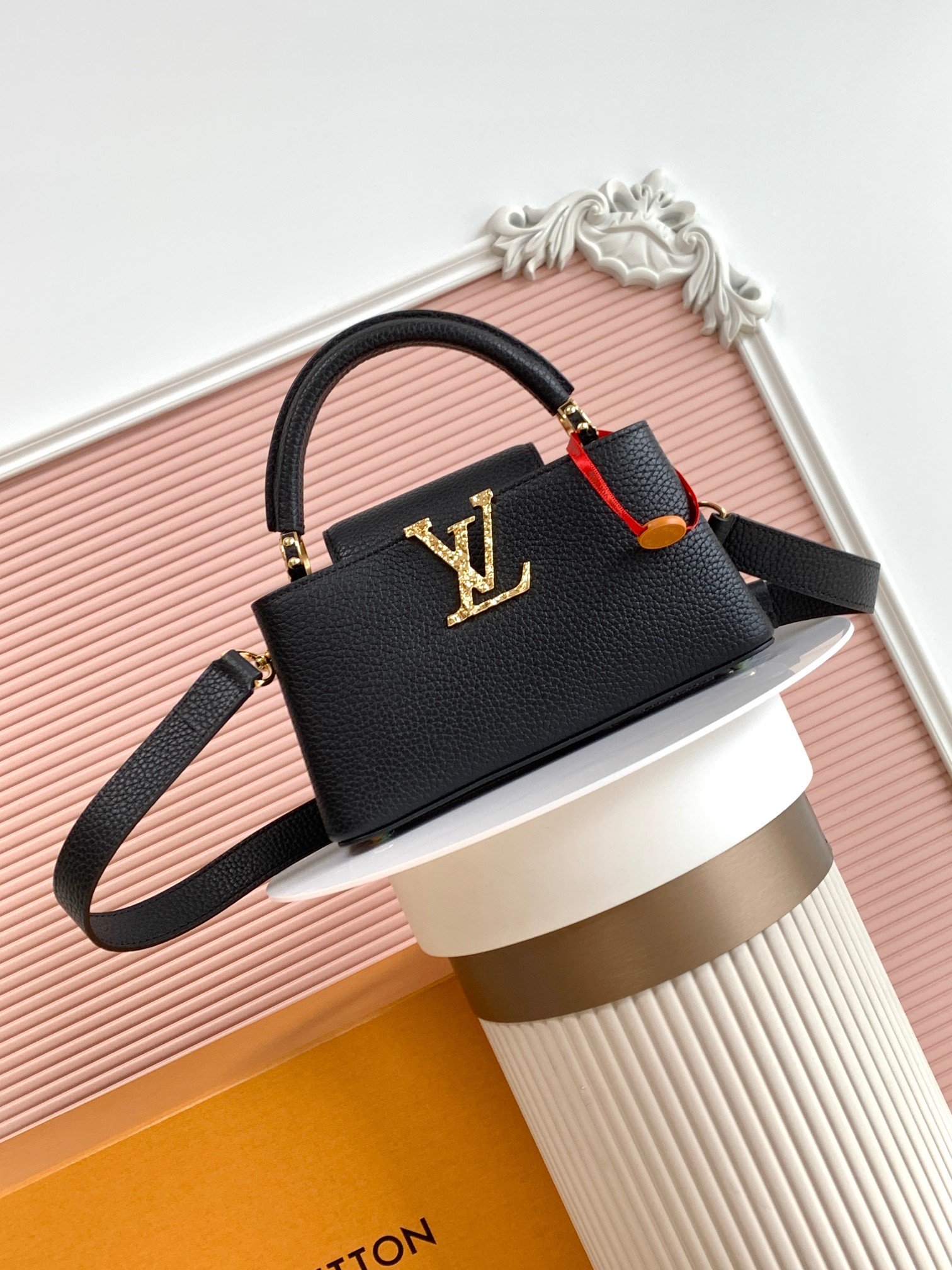 本頁精選來自本季熱賣款式,擁有不挑人的版型與簡約風格。這款 LV 原單女士手提包以黑色荔枝紋皮革製作,搭配閃耀晶鑽 LV Logo 與金屬扣件,展現大氣高級質感。容量設計實用,可輕鬆收納日常必需品如手機與長夾。多位消費者回饋指出,實物細節精緻,與專櫃幾乎無異。此款不僅是原單精品包代表之一,也在高仿精品推薦系列中佔有一席之地,適合通勤與聚會的百搭單品。