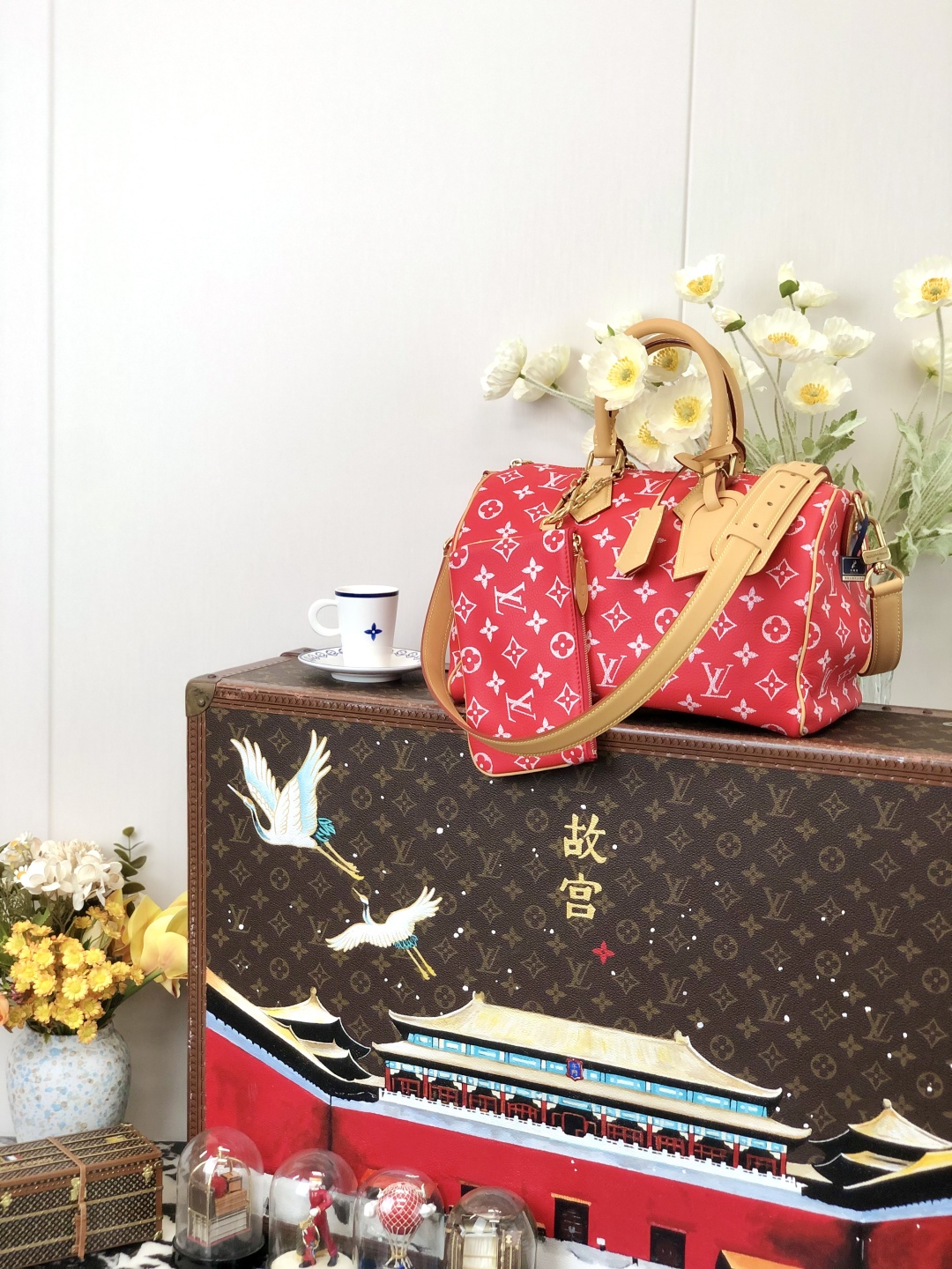 這款 LV 高仿波士頓包(M24429)以搶眼的紅色 Monogram 帆布打造,結合天然牛皮飾邊與金色五金,呈現熱情奢華的氣息。包型立挺且容量充足,能夠輕鬆收納衣物與日常用品,是短途旅行與週末外出的理想選擇。手提、斜背皆可切換,舒適便利。高仿工藝從皮質觸感到縫線細節都力求精準,貼近正品水準。使用者普遍回饋,這款不僅外觀奪目,實用性也相當突出。