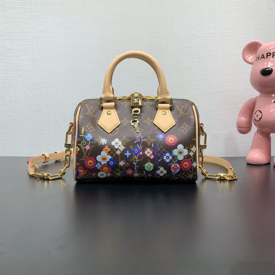 LV一比一花卉Speedy手袋將經典Monogram老花與彩色花朵印花結合,打造浪漫又奢華的風格。包體結構立體,金屬鎖扣與皮革手柄細節考究。整體充滿春日氛圍,是時尚女性展現品味與個性的精品款式。