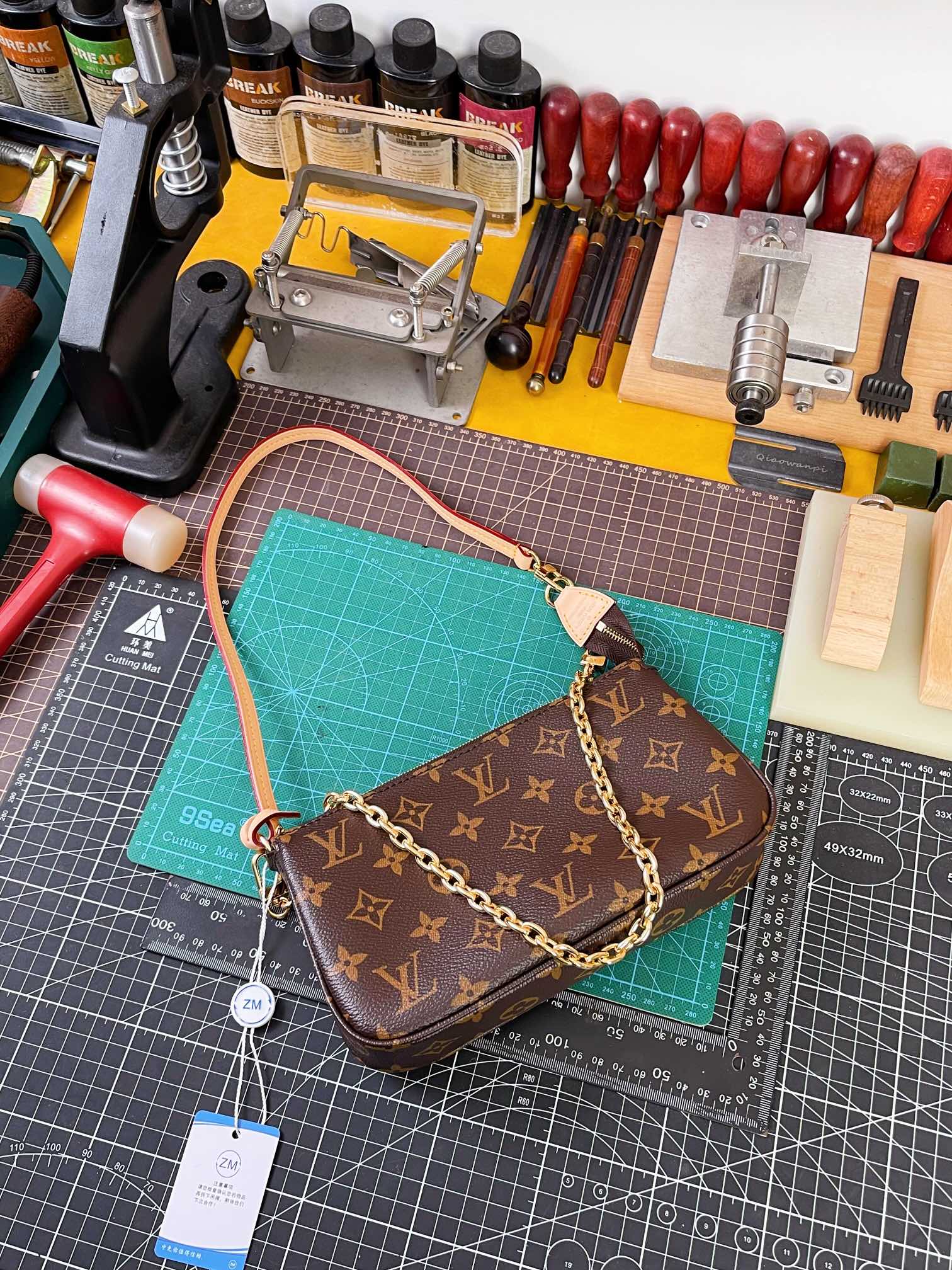 這款LV高仿鏈條腋下包以經典Monogram帆布製成,尺寸輕巧卻具實用性,搭配金色短鏈與皮革長背帶,可肩背亦可手拿,實現日常百搭造型。細緻五金與包型弧度忠實對應原版設計,展現時尚復古的高質感,深受潮流穿搭愛好者青睞,是近年熱門的經典復刻款式之一。