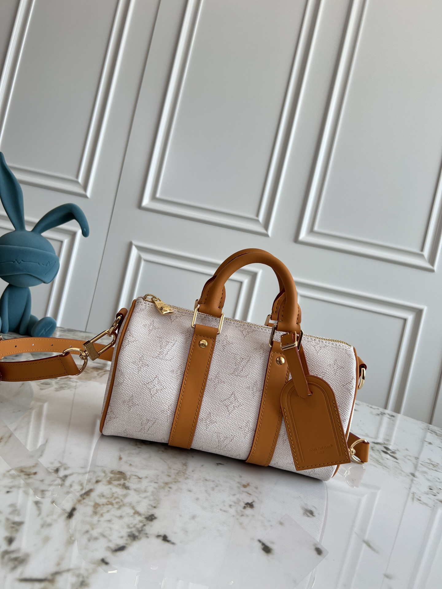 為您推薦這款LV一比一白色帆布手提包,造型以小尺寸圓筒結構打造,搭配柔和白壓花與焦糖皮革飾條,展現復古摩登美學。內裡空間雖不大,但可放下日常必備品,是目前人氣極高的小包款,亦可手提亦可肩背,無論日常或外出穿搭都能完美駕馭,兼具實用與時尚感。