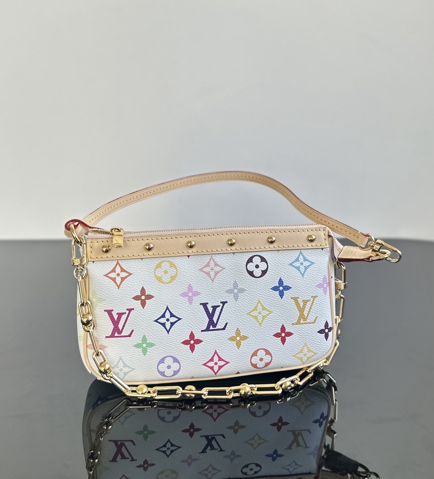 本商品為LV經典Multicolor彩色系列中人氣款式之一,採白底Monogram帆布結合自然牛皮包邊與鉚釘飾條,整體造型俐落復古。鏈條與金屬件皆採用高級拋光電鍍製程,還原度極高。LV原單仿製版本在皮質、五金與縫線細節皆嚴格對照專櫃版,拉鍊滑順、包身挺立。顧客回饋此款外出攜帶時不僅輕巧百搭,更常被誤認為限量款收藏包,是【原單等級包包】中顯眼度極高的實用之選。