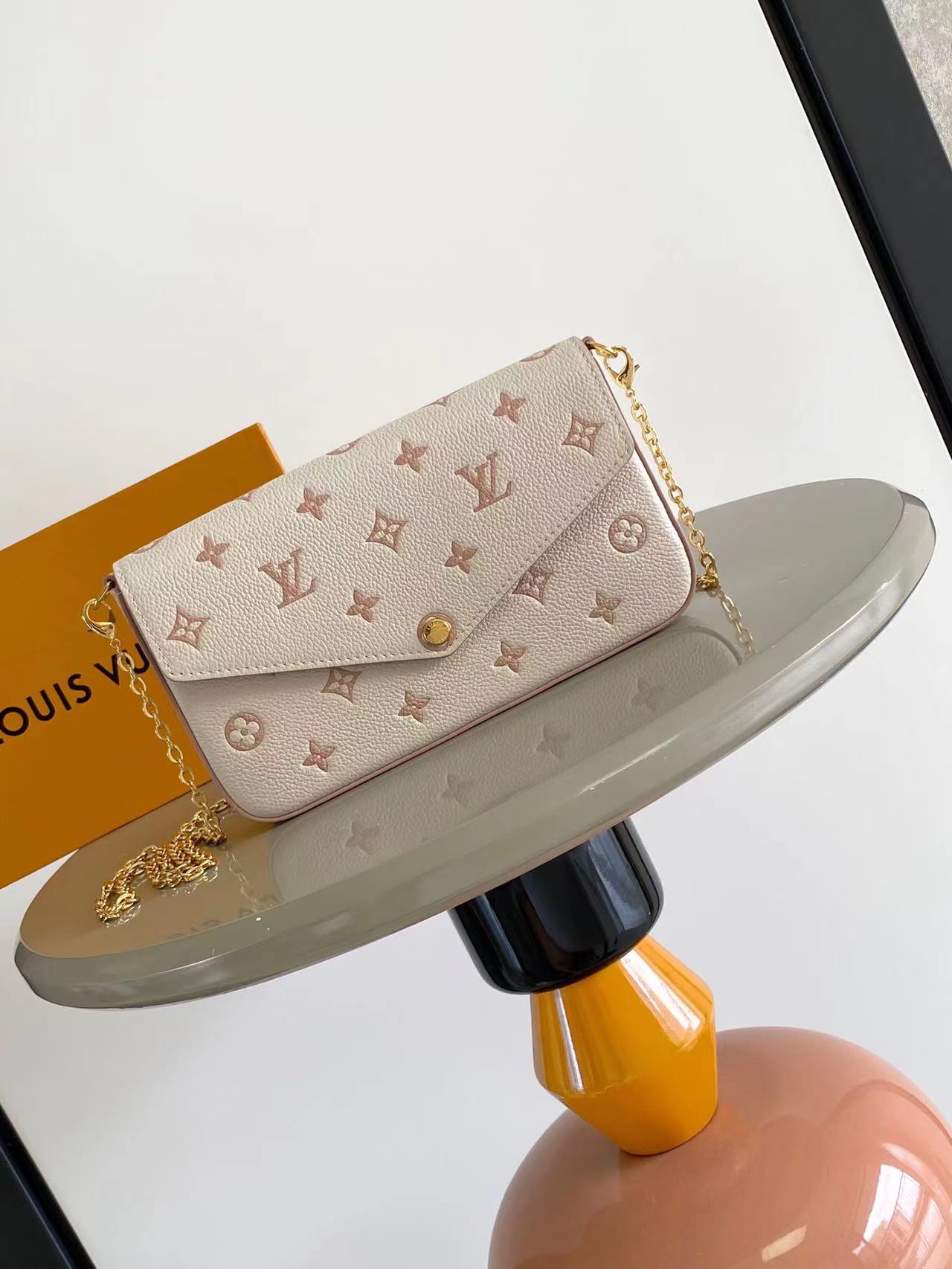 本商品採用一比一LV奶油粉信封鍊條包,Monogram Empreinte壓紋皮革搭配細緻金色鍊條,外型簡約優雅。根據客人回饋,擁有正品外觀、售價親民,包身輕盈,適合收納手機與卡夾,金屬扣具穩固,細節高度還原。此款為女生最愛設計師風穿搭中的百搭單品,無論日常、約會或正式場合皆能輕鬆駕馭。