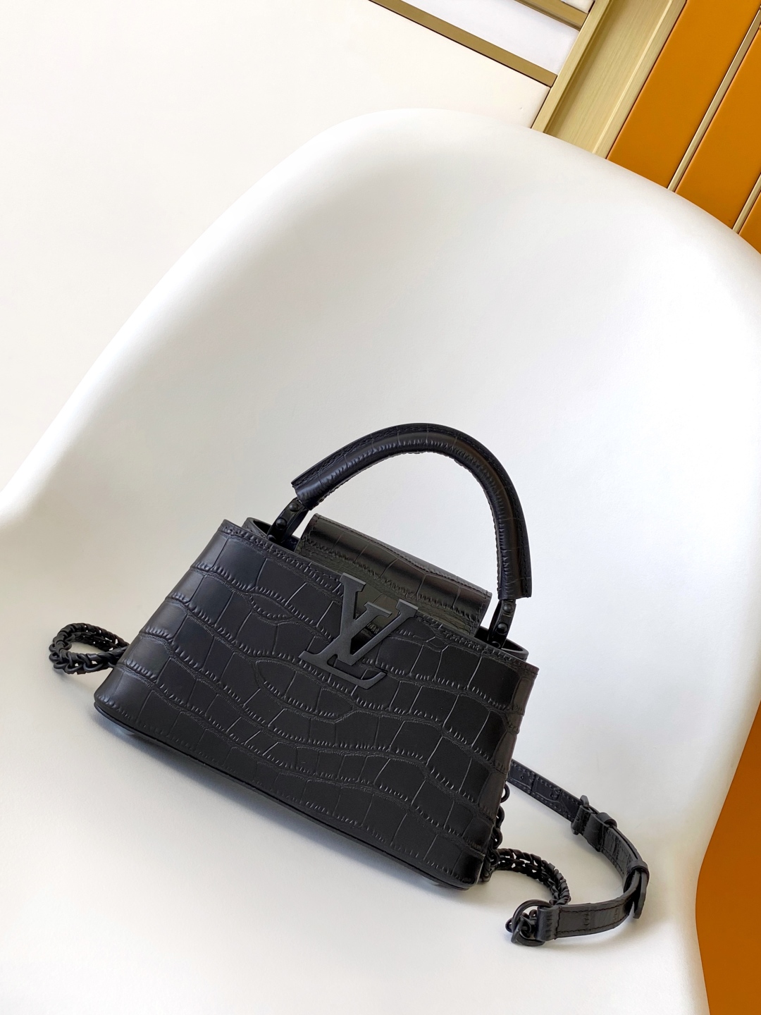 擁有正品外觀、售價親民,這款LV高仿壓紋手提包選用進口黑色仿鱷魚壓紋皮革,配上質感霧黑Logo與金屬鏈條肩帶,設計俐落又具時尚氣場。包型硬挺不變形,內部容量適中,適合日常通勤與出遊。根據客人回饋,出門三次都被朋友誤認為正品,細節處實在太驚艷了!即使放入長夾與手機也不顯臃腫,是一款結合高級感與實用性的百搭精品包包。