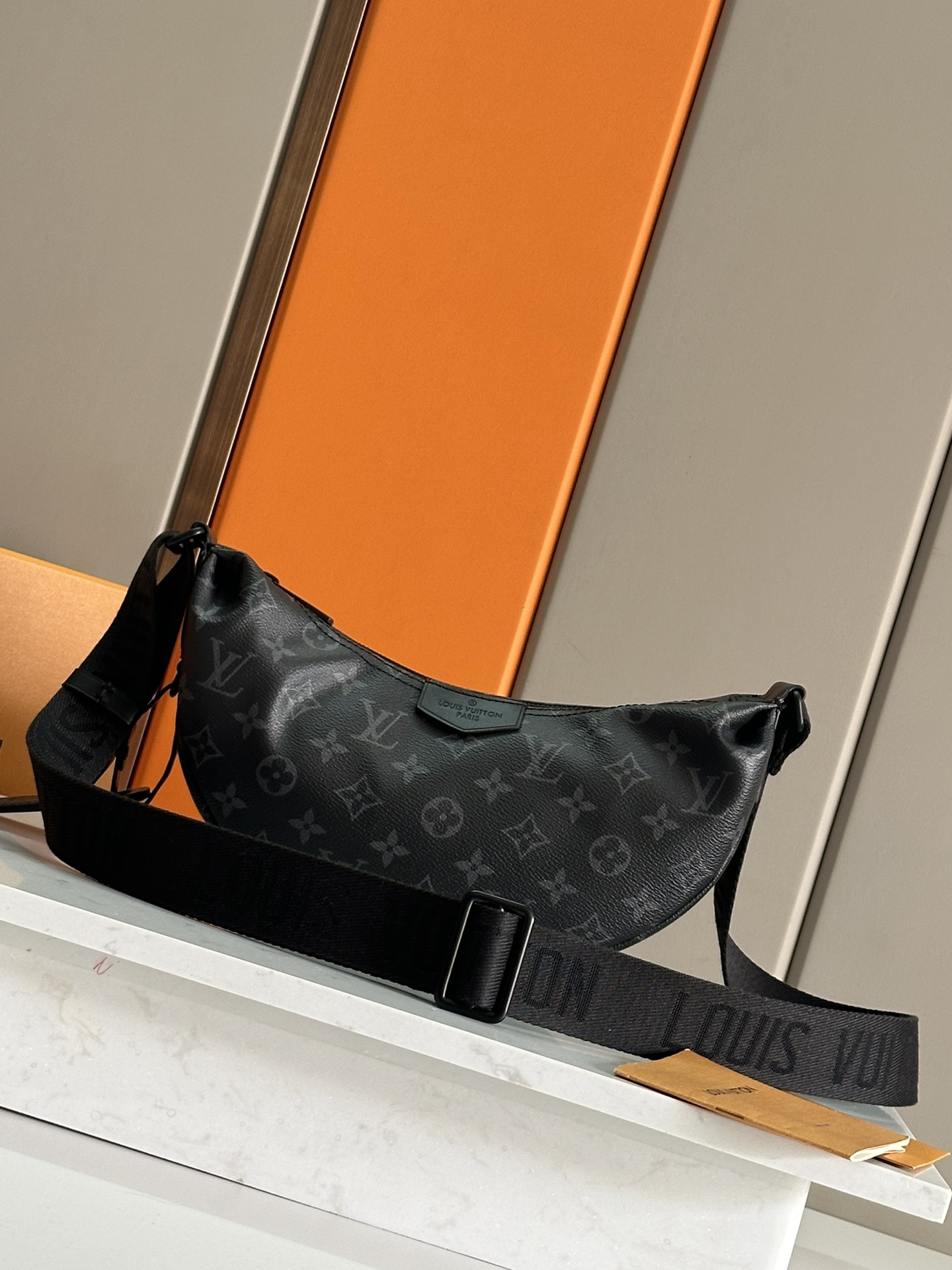 本款LV高仿黑色半月斜背包採用Monogram Eclipse壓紋帆布打造,獨特弧形輪廓貼合身形,搭配加寬調節背帶設計,展現實用又具街頭潮感的風格。內層收納空間充足,能輕鬆裝載手機、錢包、耳機與日常隨身用品。包體表面皮革手感與正品幾近無異,花紋對齊細緻,五金拉鍊順滑有質感。此款高仿男用斜背包深受年輕族群歡迎,特別適合搭配運動風或機能系穿搭,是平日出行的實用包款首選。