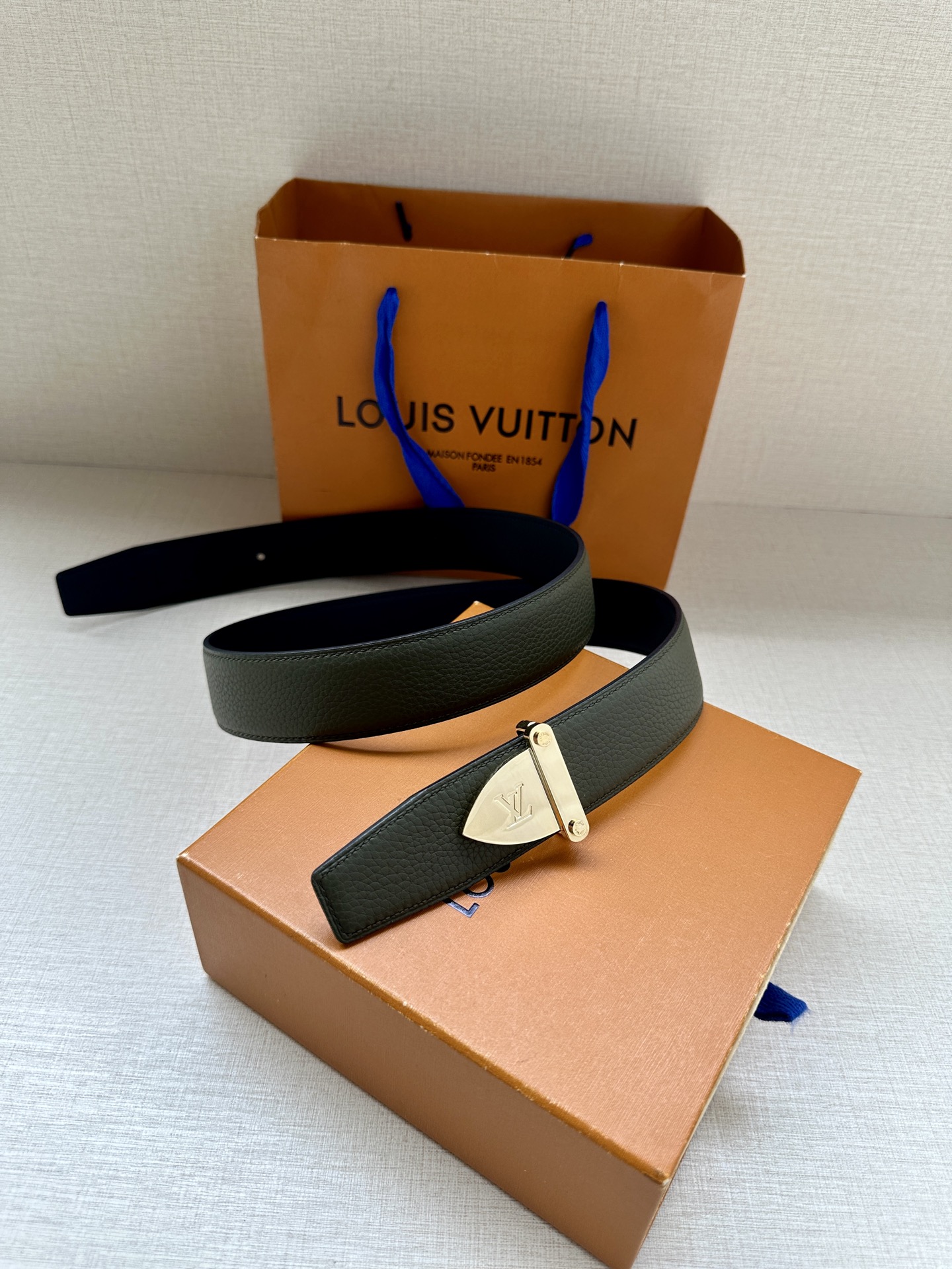 這款 LV 一比一男士皮帶以沉穩的深綠色牛皮打造,皮質紋理清晰細膩,觸感柔韌。搭配經典 LV 標誌金色扣頭,呈現尊貴與時尚並存的質感。無論是日常通勤還是正式場合,皆能完美襯托穿搭風格,對標原版細節,展現一比一精準工藝。