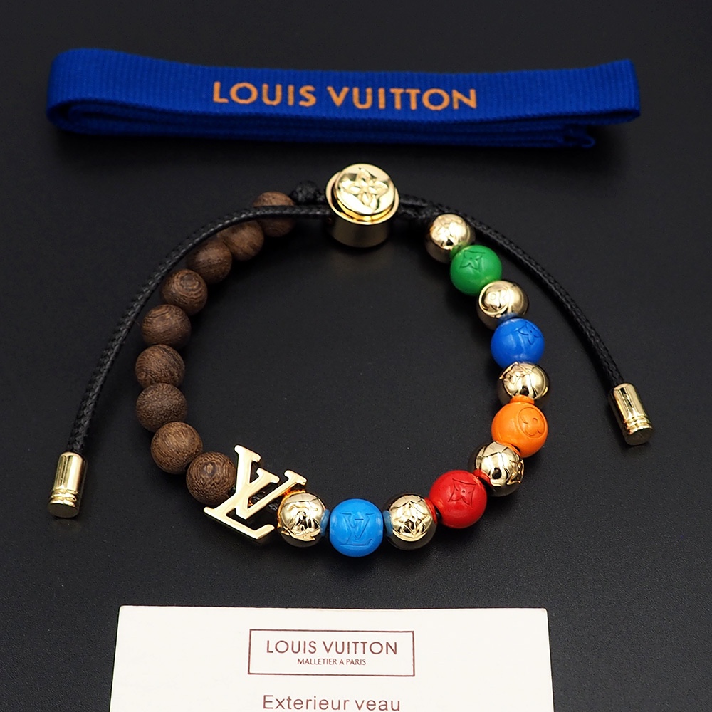 本頁精選來自本季熱賣款式,擁有不挑人的版型與簡約風格。LV原單男女款彩色珠木質串飾手環,以天然木質珠搭配藍、紅、綠、橙等彩色樹脂珠與金屬雕刻Logo珠,營造出鮮明的視覺層次感。中間以經典LV標誌作為亮點,展現品牌辨識度與潮流感。採用可調節繩扣設計,佩戴方便且適合不同手圍。多位買家回饋質感厚實、配色獨特,適合休閒街頭風或個性穿搭,讓日常造型更具趣味與亮點。