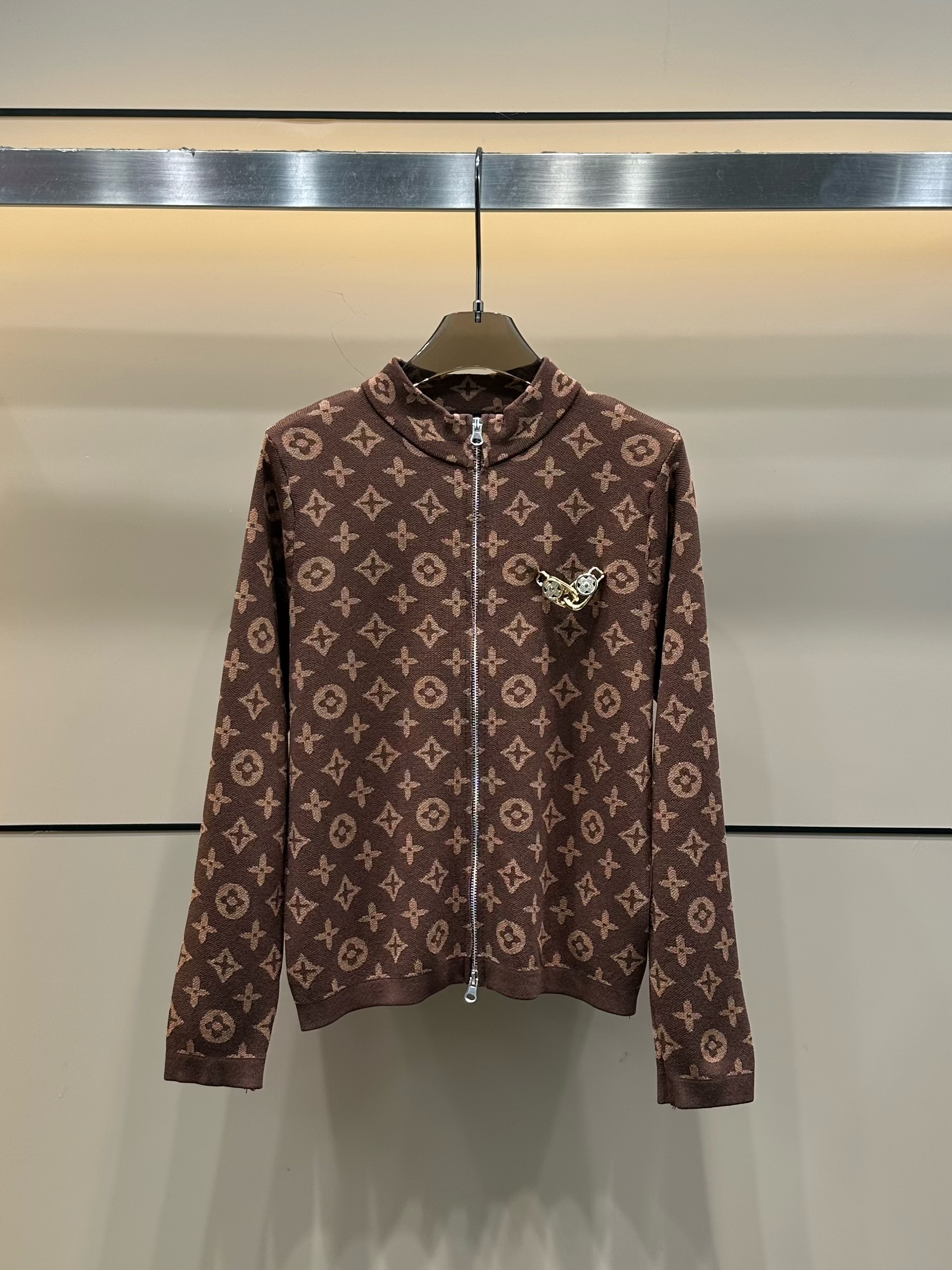 LV 高仿 女士針織外套,以經典棕色老花元素為主體,搭配全拉鍊設計,簡單大方又不失高級感。面料柔軟親膚,穿著舒適透氣,適合日常通勤或休閒搭配。胸口的精緻點綴細節,讓整體更具品牌辨識度。這款 LV 高仿 外套受到眾多買家喜愛,有顧客分享:「衣服質感很好,花紋對稱,完全沒有廉價感,搭配牛仔褲出門,朋友還以為是真品!」不論單穿或內搭,都能展現時尚魅力。