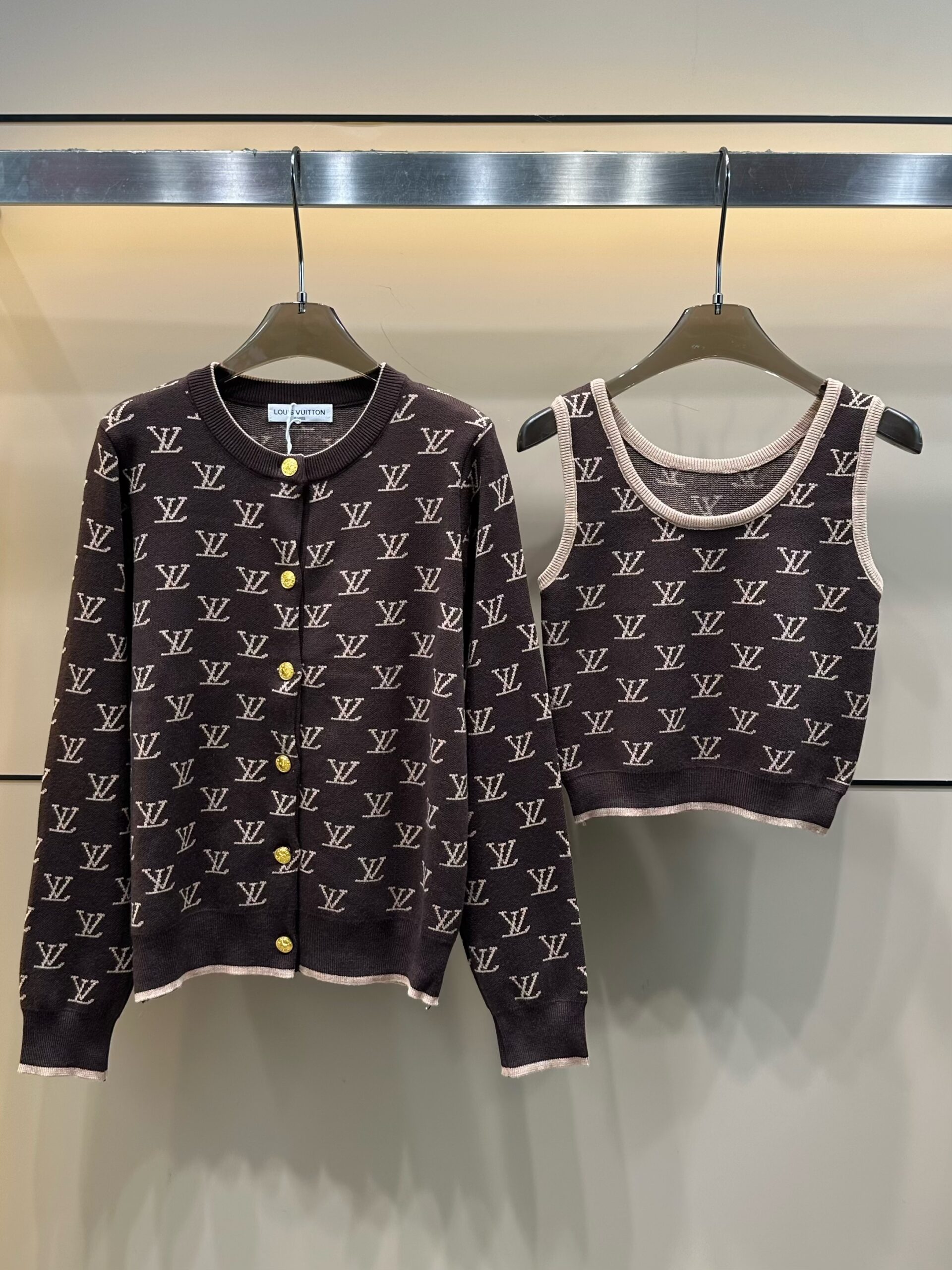 這款 LV 一比一針織外套,以深咖啡色為基底,搭配全幅 LV 經典字母圖騰,細膩的針織工藝讓每一處細節都展現高級質感。金色鈕扣點綴正面,提升整體華麗氛圍,簡約中帶有優雅氣息。面料柔軟貼身,舒適度極佳,適合日常穿搭或辦公場合,均能呈現自信與高貴。顧客回饋表示:「質感完全對標專櫃,上身立刻有氣場感。」