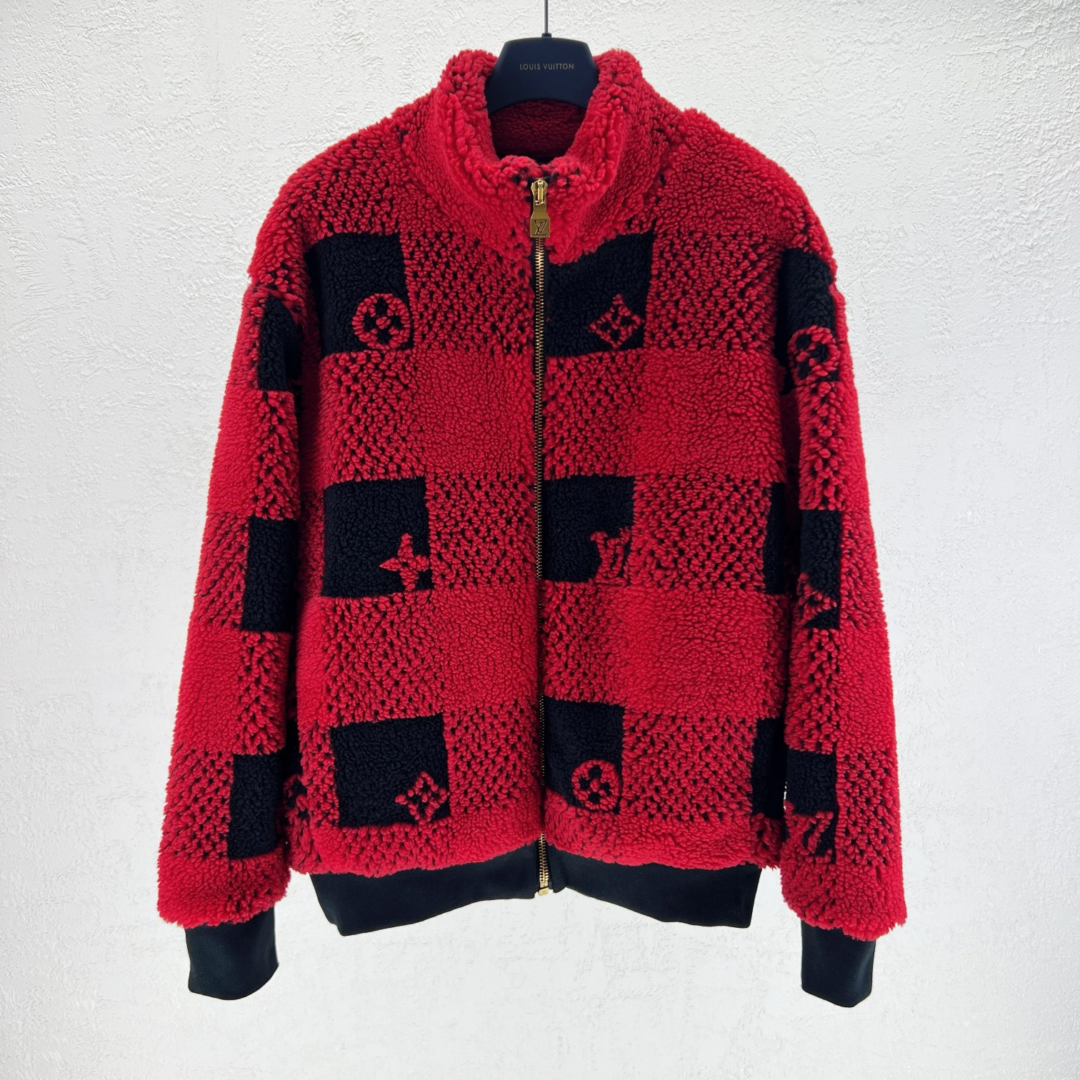 本款LV高仿羊羔絨外套以紅黑棋盤格紋設計呈現視覺衝擊,搭配經典Monogram圖案隱藏其間,造型亮眼而不浮誇。採用柔軟高仿羊羔毛布料,厚實保暖又舒適,適合寒冷季節穿搭。前拉鍊設計便於穿脫,袖口與下襬拼接羅紋布,增加服貼度與防風效果。整體剪裁寬鬆不貼身,日常搭配運動褲、牛仔褲或潮流寬褲皆能展現個性風格。作為一件精品仿製推薦單品,其細節做工與正品幾可亂真,深受年輕族群與街頭穿搭愛好者喜愛。