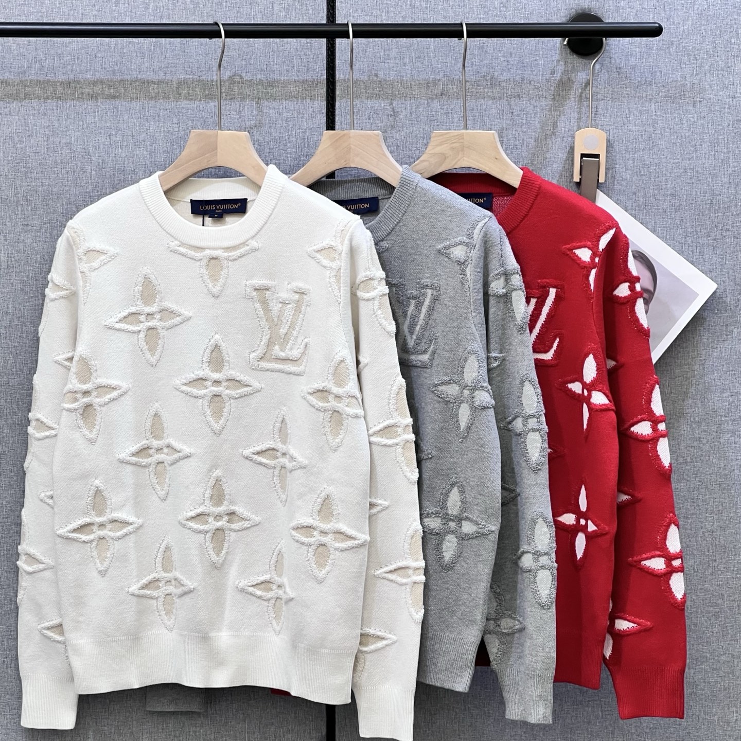 這款 LV 一比一立體花紋針織毛衣,採用精緻的立體織造工藝,將 Monogram 經典花紋與 LV 字母標誌立體呈現,層次感十足。提供白色、灰色與紅色三種配色,無論是低調沉穩或亮眼出眾,都能滿足不同搭配需求。毛衣手感柔軟,彈性佳,保暖同時不失舒適度。多位顧客反饋:「上身非常挺版,立體紋路效果高級,日常穿搭也很百搭。」是秋冬必備的高質感單品。 商品說明:
