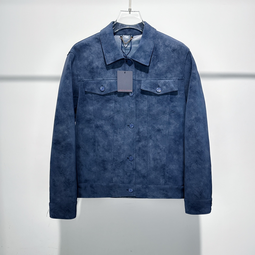 這款 LV 一比一藍色麂皮感外套,以襯衫版型結合外套設計,展現俐落線條與高雅質感。正面四粒鈕扣搭配胸前雙口袋,細節精緻且實穿。藍色麂皮感材質觸感細膩,帶來沉穩氣質與獨特品味。搭配牛仔褲或卡其褲,無論休閒或半正式場合都能輕鬆駕馭,廣受顧客好評。適合秋冬換季或春季日常穿搭,台港快速配送,讓您即刻擁有專屬時尚。