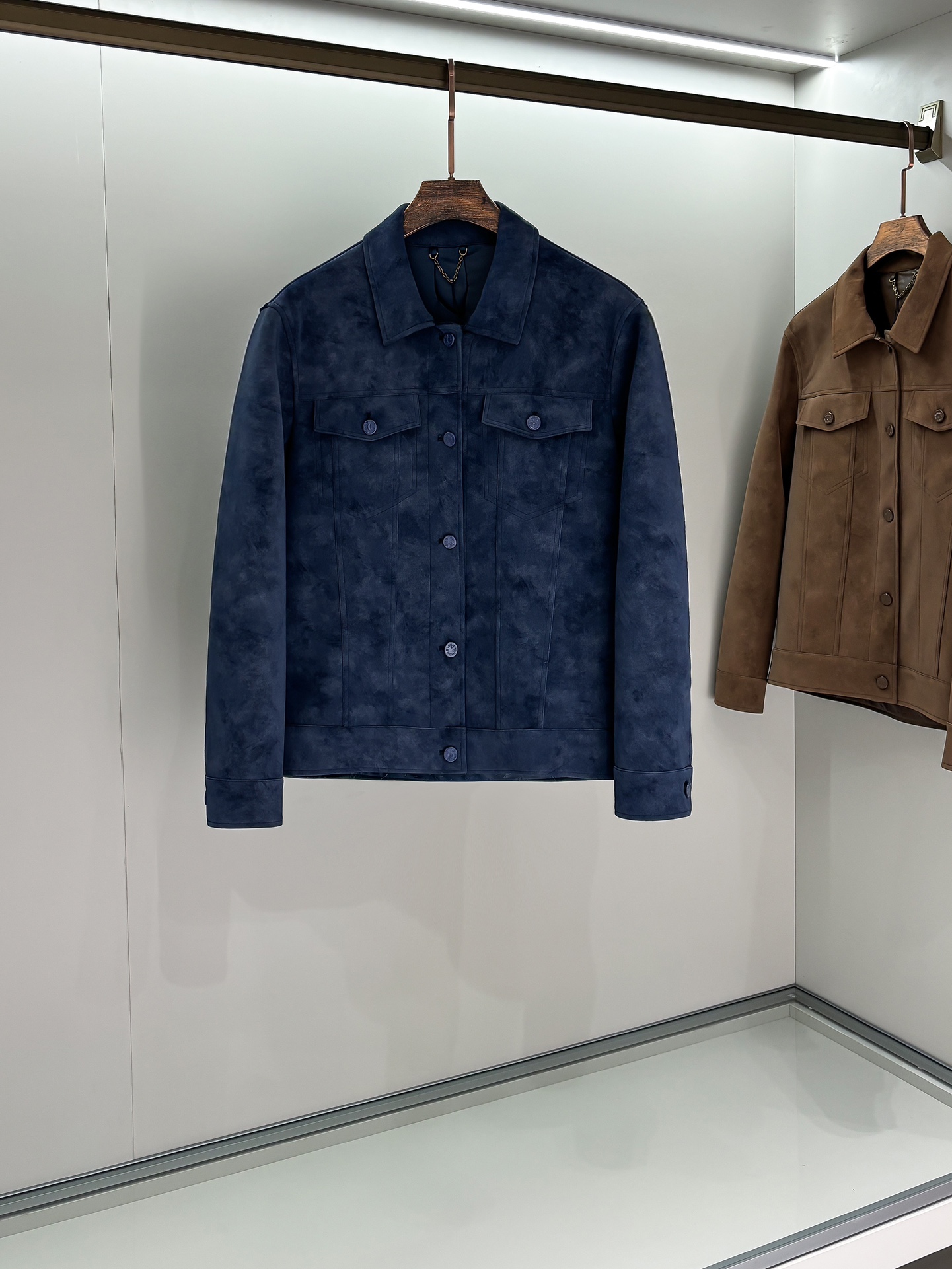 這款 LV 高仿藍色麂皮感外套,以極簡俐落的翻領與正面四粒鈕扣設計,呈現低調卻充滿質感的風格。胸前口袋增添實用細節,麂皮感面料觸感細膩,穿著舒適不厚重,適合換季與日常出行。深藍色調展現穩重氣質,搭配襯衫或 T 恤都能塑造優雅造型。台港買家一致好評,日常通勤與休閒穿搭的必備單品。