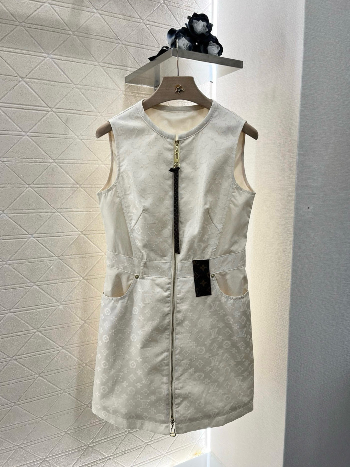 這款 LV 高仿無袖連衣裙,以純白色為基調,搭配品牌經典壓紋圖騰,低調卻極具辨識度。正面採用拉鍊設計,方便穿脫,並增添俐落時尚感。腰間口袋不僅實用,也讓整體造型更顯層次。輕盈面料舒適透氣,適合春夏季日常穿搭或休閒聚會,展現自在又不失高雅的氣質。顧客回饋指出:「上身合身剪裁修飾身材,質感完全媲美專櫃款。」