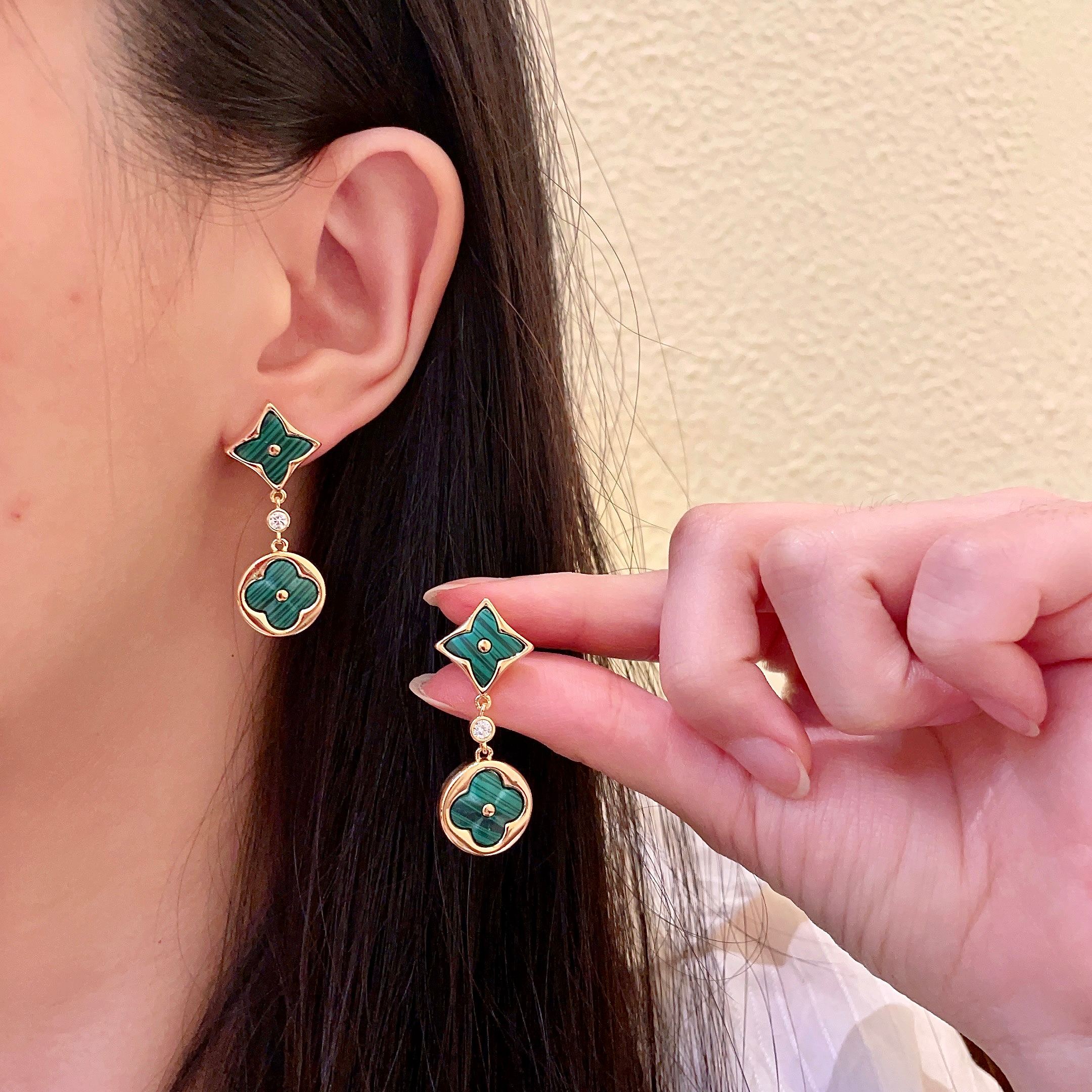 這款LV高仿耳環以經典花瓣圖案為設計靈感,綠色光澤搭配金色邊框,細節處點綴晶鑽,散發精緻奢華感。雙層吊墜設計在耳畔隨步伐輕盈搖曳,為造型增添亮點。無論是搭配簡約日常穿搭,還是華麗晚宴禮服,都能呈現專櫃級的高雅質感與優越做工。