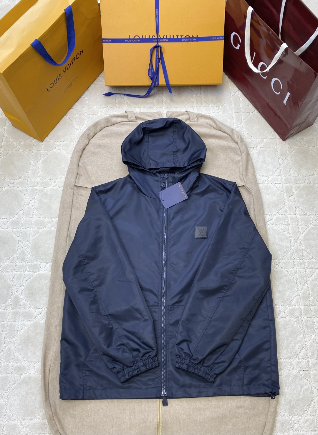 本商品採用高質感材質打造,細節考究、整體線條利落。這款LV高仿男款防風外套以深藍色為基調,搭配連帽與拉鍊全開設計,簡約實穿風格深受男性消費者喜愛。外套採用輕量防潑水材質,適合多變氣候穿著,左胸品牌LOGO壓紋呈現低調質感。彈性袖口設計可有效防風,穿著舒適不緊繃,適合通勤、旅遊與日常多種場合。多位顧客回饋此款穿上修身不悶熱,是秋冬轉換時期必備單品。
