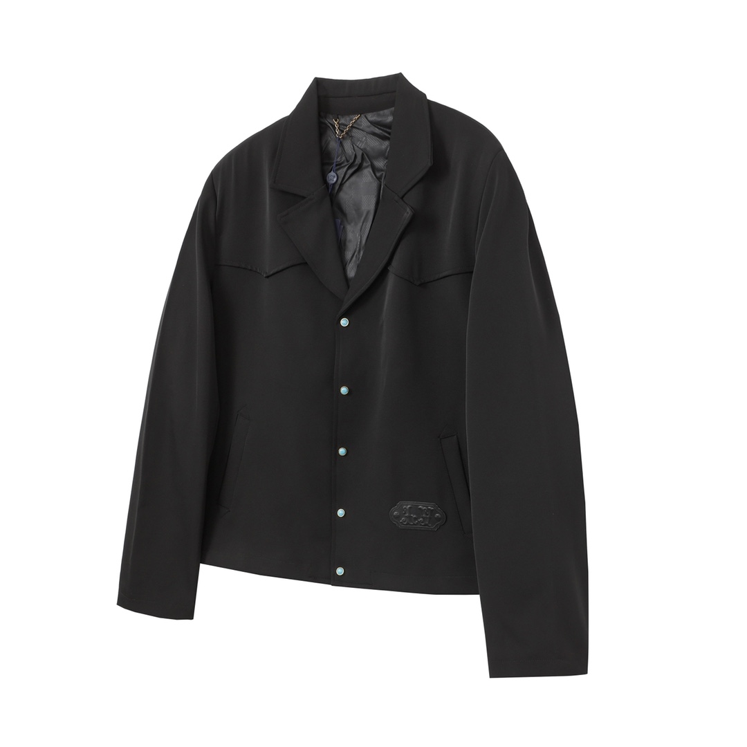 本商品採用高質感材質打造,細節考究、整體線條利落。這款LV高仿男款翻領外套以黑色挺版布料製成,剪裁簡約卻具風格,胸口線條設計呼應西部元素,展現品牌低調識別感。正面以金屬釦點綴、下擺拼接壓印皮標,提升整體質感。內裡採用光滑襯布,舒適不悶熱,穿脫滑順不卡。此款外套版型挺拔有型,搭配襯衫、T恤或毛衣皆適合,適用於通勤、約會或日常場景穿搭。