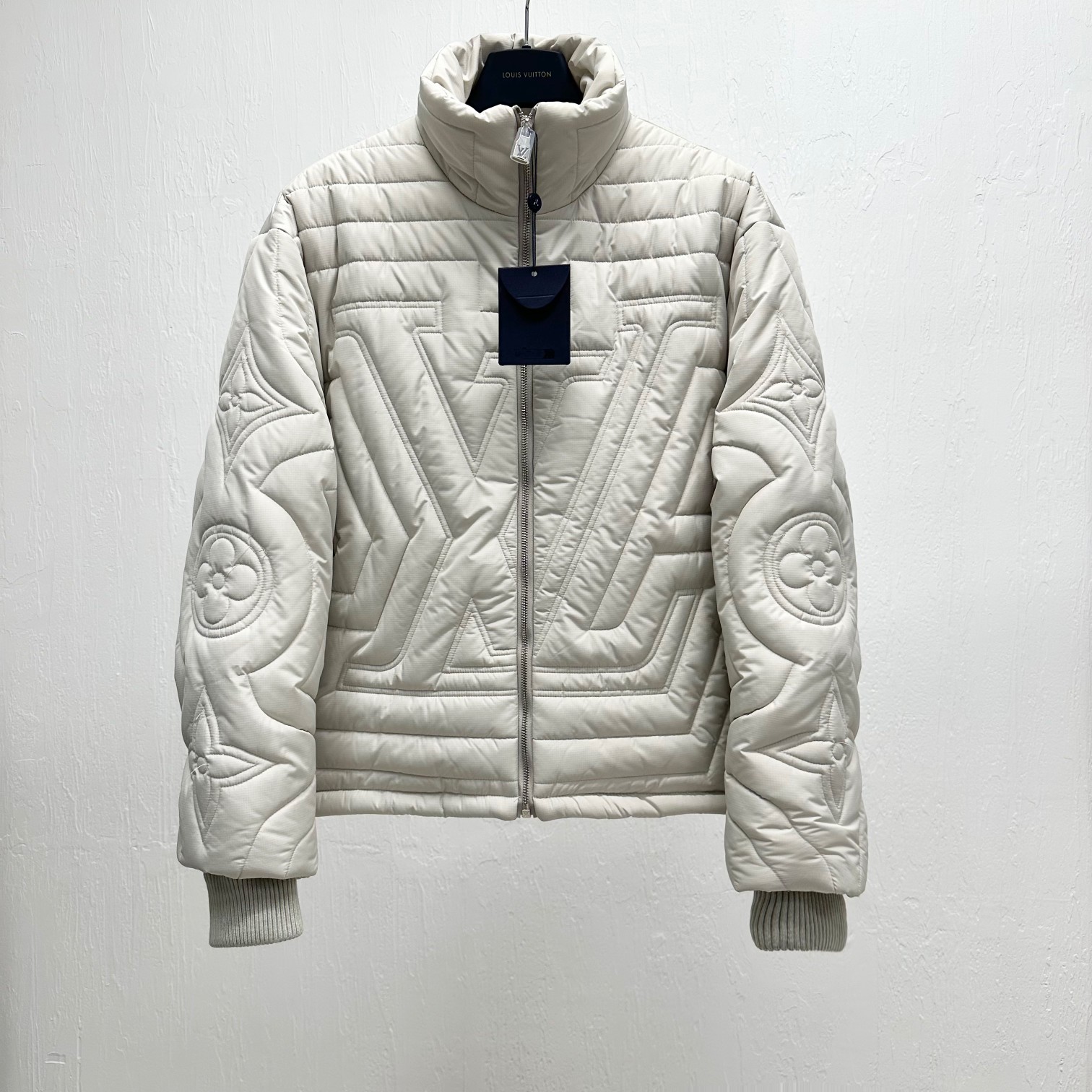 這款Louis Vuitton羽絨外套採用立體壓花工藝,呈現經典LV花卉與字母標誌圖騰,質感突出,時尚辨識度極高。高密度防風面料搭配優質羽絨填充,保暖同時不顯臃腫,極適合冬季出行與城市穿搭。內裡細緻走線,袖口彈性收口設計有效鎖溫。版型修身挺拔,對標正品剪裁與工藝細節,無論搭配牛仔褲或運動褲皆展現男性幹練氣質。一比一製作,細節呈現極高完成度,是冬季不可或缺的精品級高仿羽絨服推薦款。