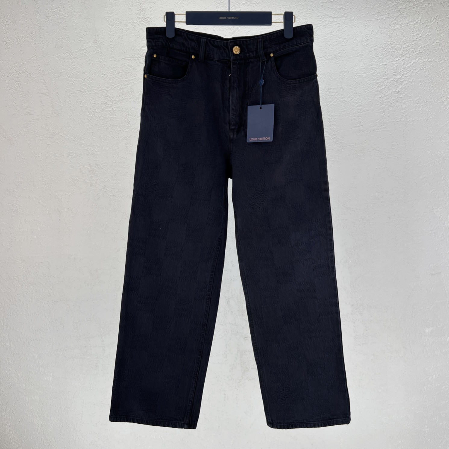 這款LV一比一精品牛仔褲以深藍水洗布料為基底,結合隱約浮現的棋盤格紋圖騰,極具辨識度與細節質感。選用高磅數純棉牛仔面料製成,結構挺拔、厚薄適中,兼具耐穿性與舒適度。標準五口袋設計,搭配金屬扣與精緻車線,呈現低調奢華風格。根據穿搭愛好者回饋,此褲款對身形修飾效果優異,適合日常街頭風、簡約休閒、甚至半正式穿搭,展現Louis Vuitton經典元素與時尚實穿並存的魅力。