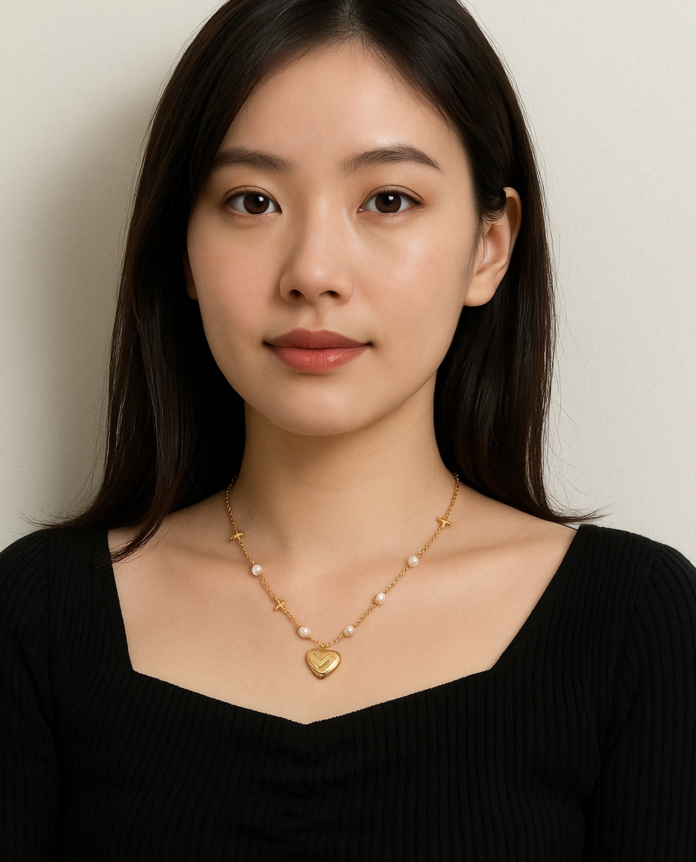 本頁精選來自LV一比一系列愛心吊墜珍珠項鍊,金色主調搭配立體LV壓印吊飾,配合細緻珍珠與Monogram花型點綴,展現甜美優雅氣質。穿戴後獲得眾多用戶讚賞,日常配搭或約會場合皆宜。