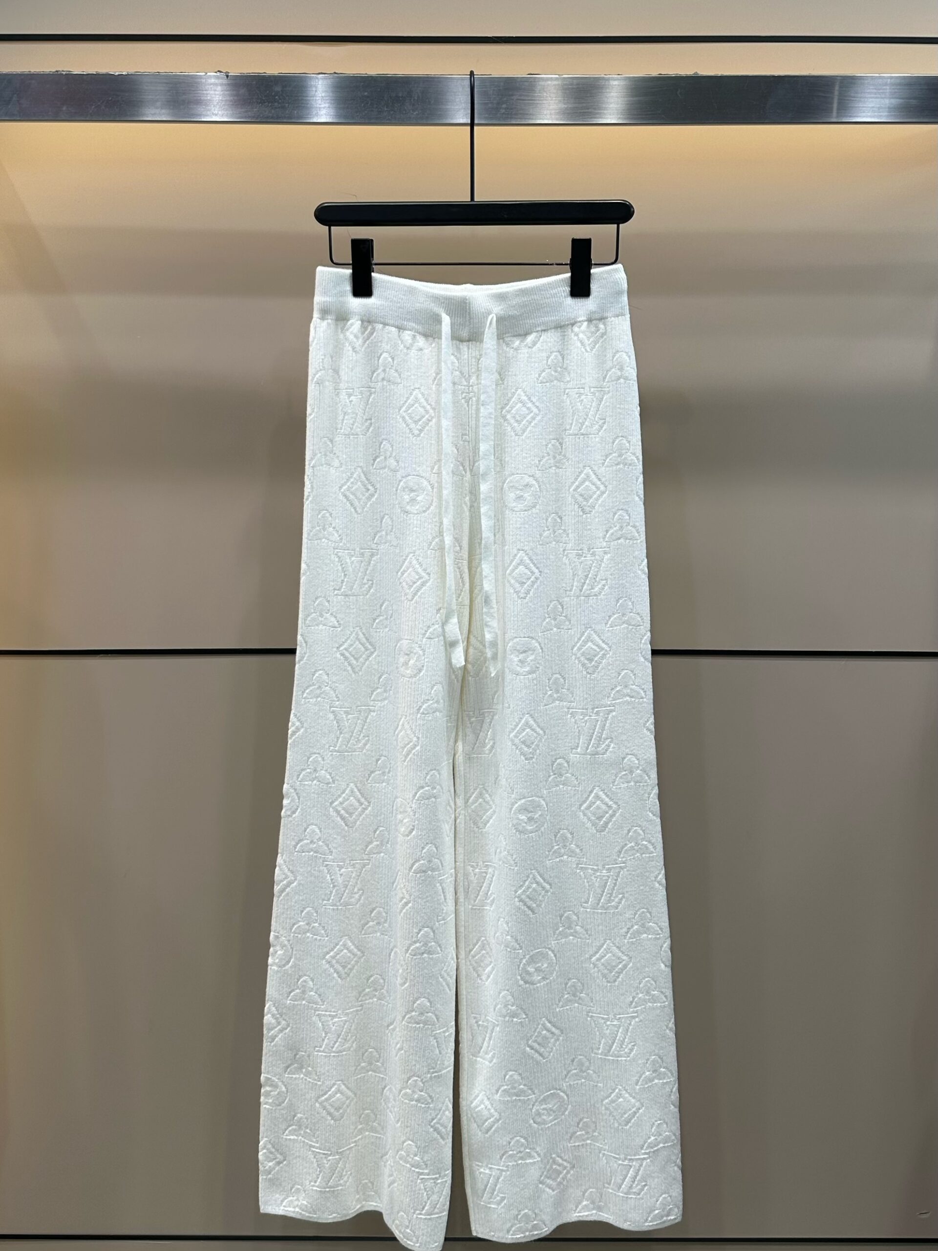 這款LV高仿女士白色寬腿長褲,選用柔軟親膚的針織面料,搭配經典Monogram提花工藝,整體質感低調奢華。寬鬆直筒版型,穿著舒適不挑身材,能夠自然修飾腿型,展現優雅休閒的氛圍。鬆緊腰頭配抽繩設計,方便調節,增添實穿性。買家好評反饋,做工精細、上身版型與專櫃相差無幾,搭配針織外套或T恤都能輕鬆營造高級感。