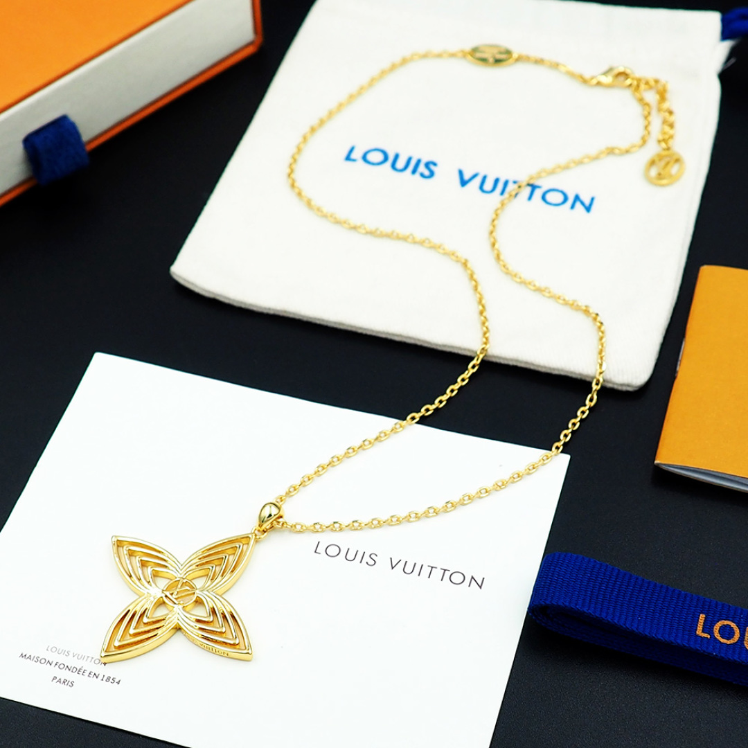 Louis Vuitton 原單四葉花瓣吊墜項鍊,以經典 Monogram 花卉為靈感,展現精緻與優雅。吊墜採用鏤空層疊設計,結合金屬光澤,立體感十足。簡約鏈條搭配 LV 經典圓牌細節,細緻奢華,無論單戴或與其他飾品疊搭,都能為造型增添高級感。此款原單精品工藝,細節精緻到位,與專櫃質感高度一致,是時尚女性不可或缺的百搭單品。