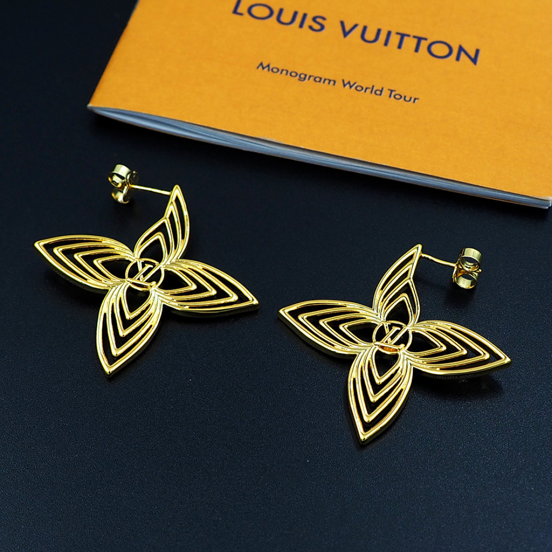 品商品詳情 Louis Vuitton 原版四葉星型花瓣耳環,採用高級金色金屬打造,設計靈感取自 Monogram 花卉元素。四片花瓣呈現星型結構,層層鏤空線條,展現立體感與時尚感,中心搭配 LV 經典標誌,低調卻奢華。原版工藝,細節精緻,專櫃級質感,適合日常或正式場合,讓造型更加亮眼。