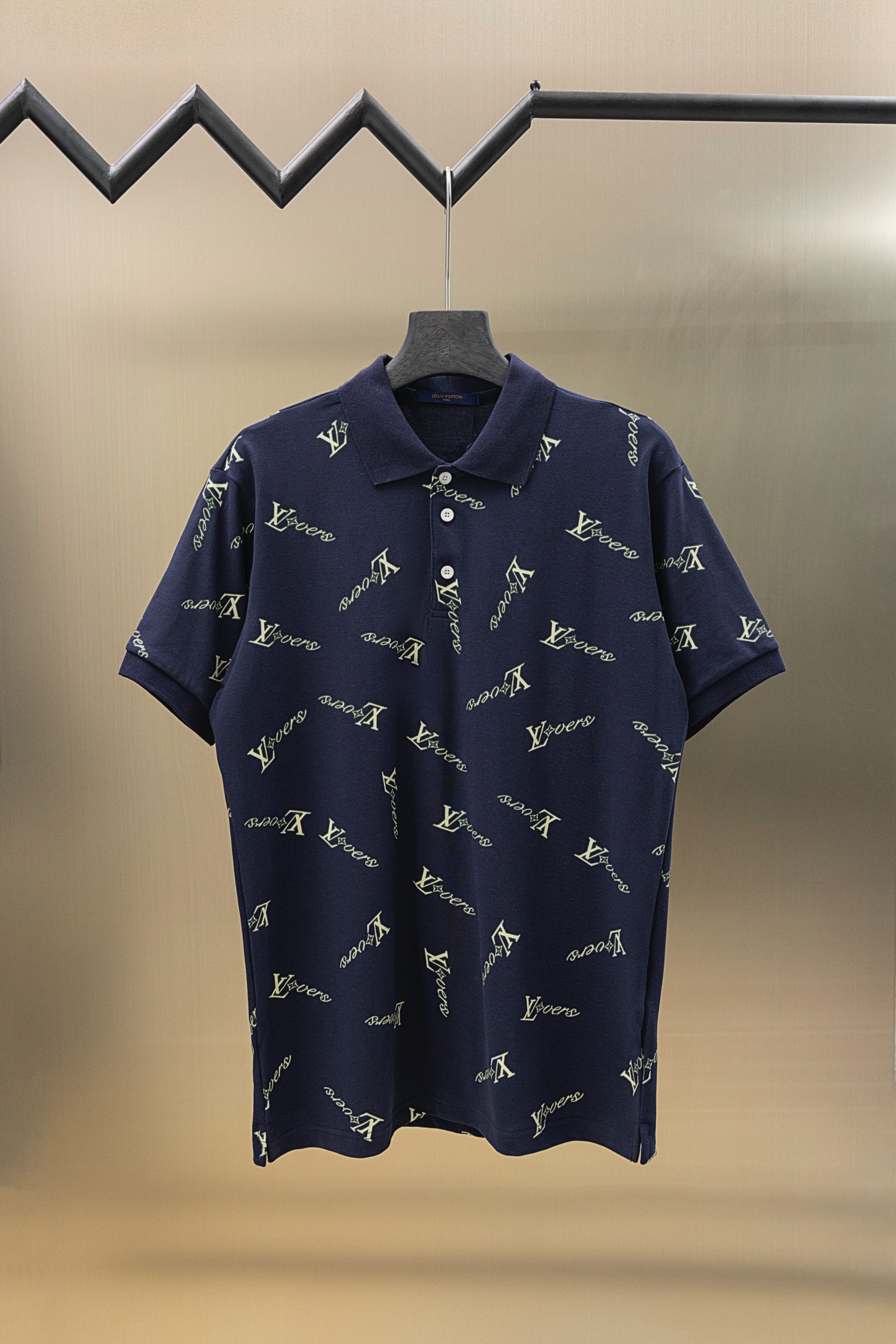 這款LV高仿男士深藍色POLO衫,整體以深藍色為基底,搭配經典LV字母與標誌性Logo的滿版印花設計,呈現沉穩又時尚的質感。高品質棉料製作,手感柔軟親膚,吸濕透氣,適合炎熱夏季穿著。三粒排扣門襟設計搭配立體翻領,保持POLO衫的經典紳士格調。深藍色不僅百搭,還能突顯男士成熟穩重氣質,適合商務休閒、日常出街或朋友聚會。實物細節做工精緻,面料挺闊有型,多位買家反饋與專櫃版相差無幾,性價比極高。