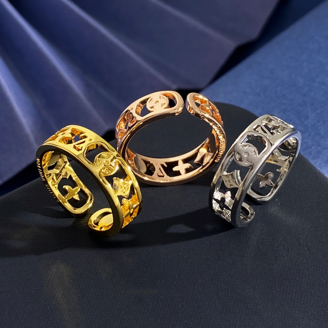 多位買家給出五星評價,表示實物質感優於預期。此款LV高仿鏤空花紋戒指提供金色、玫瑰金與銀色三種配色選擇,戒環採用品牌經典Monogram花紋與LV字母鏤空設計,既保留輕盈感又展現精緻細節。高拋光金屬表面耐磨抗氧化,長時間佩戴依舊光澤如新。戒指開口設計方便調節尺寸,適合不同手型。高仿版本在重量、刻紋清晰度與表面處理上與專櫃款極為接近,是追求質感與時尚感消費者的理想之選。