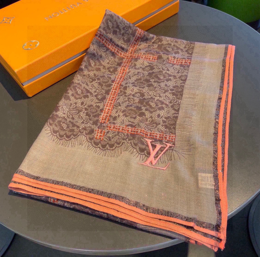 這款 LV 精品仿製圍巾,以棕色基底搭配橘色拼接細節,營造出低調卻充滿奢華感的視覺效果。圍巾上點綴細緻花紋與經典 LV 標誌,展現品牌一貫的時尚風格。採用柔軟材質製成,觸感舒適且保暖,能在日常或通勤時輕鬆搭配,增添造型層次感。無論是搭配深色大衣或淺色針織,皆能襯托出沉穩又摩登的氣質。