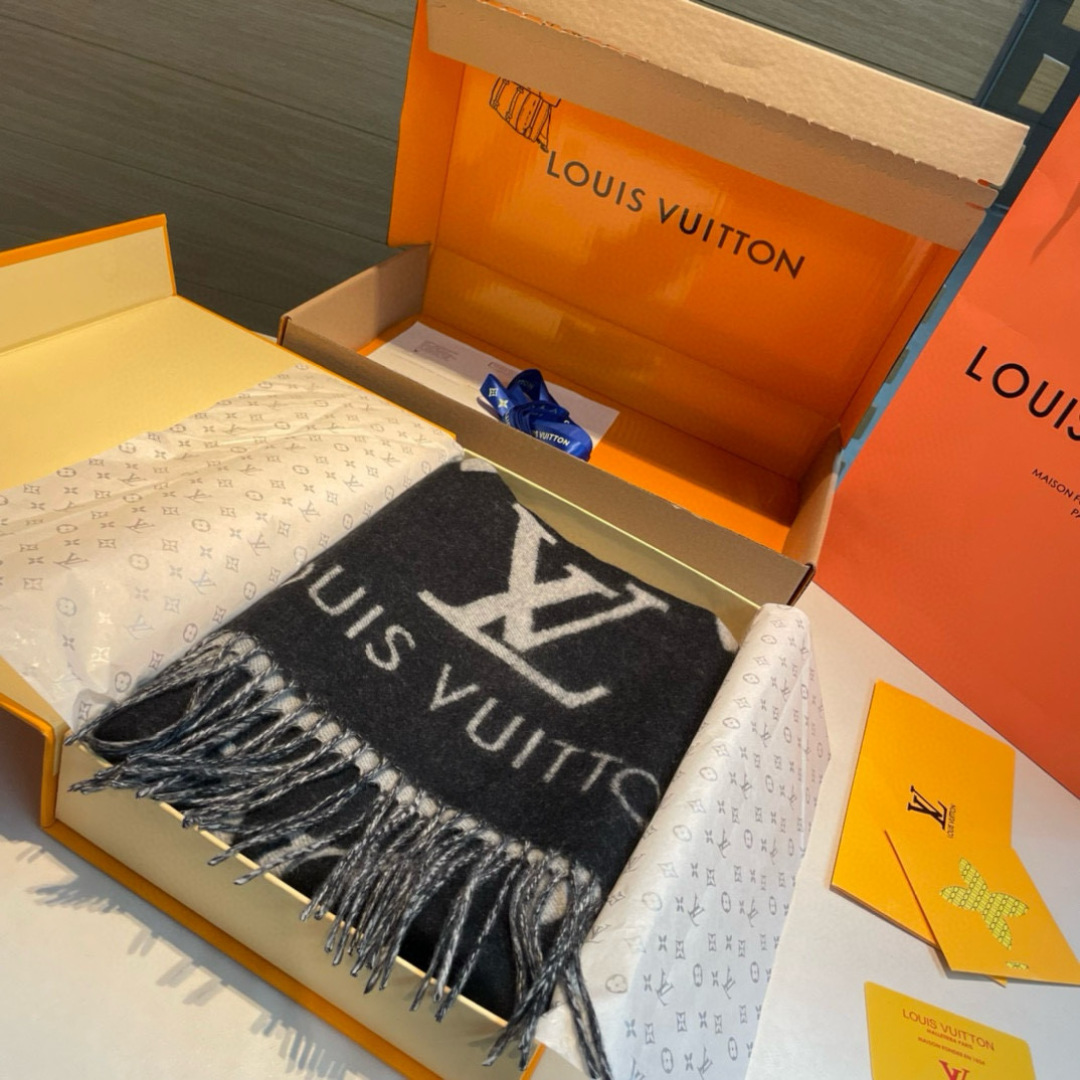這款 LV 一比一圍巾以黑灰雙色為基調,搭配大尺寸經典 LOGO 設計,展現強烈的品牌辨識度。羊毛混紡材質柔軟舒適,質感細膩,保暖效果優秀。流蘇邊緣增添動感,搭配冬季大衣或休閒裝束都能彰顯不凡氣質。低調配色易於搭配,既適合日常使用,也能成為送禮的體面之選。