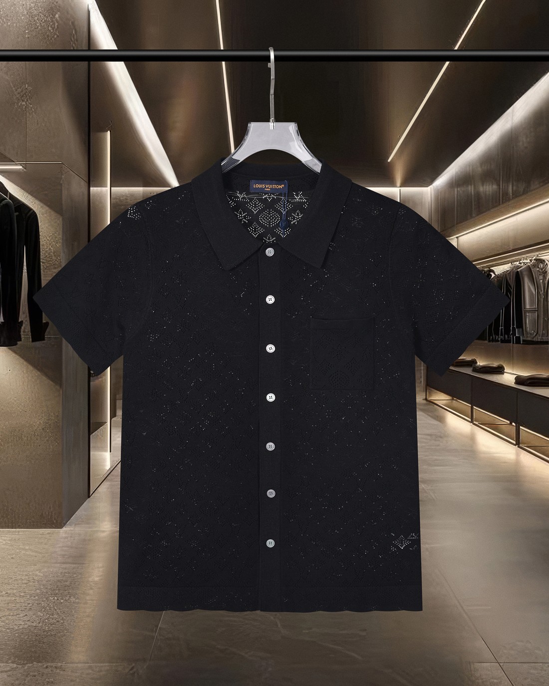 這款LV 原單男士黑色短袖襯衫,以精緻鏤空工藝展現品牌經典Monogram元素,低調中蘊含奢華感。採用輕薄舒適面料,透氣性佳,夏季穿著清爽不悶熱。胸前小口袋設計實用又點綴造型,搭配全排扣襯衫款式,適合日常通勤與休閒聚會穿著。顧客反饋:「面料清涼,細節精緻,穿上身很修飾身材,夏天首選。」此款原單版忠於專櫃細節,無論剪裁、面料還是紋理呈現都極具質感,是男士夏季不可缺少的百搭單品。