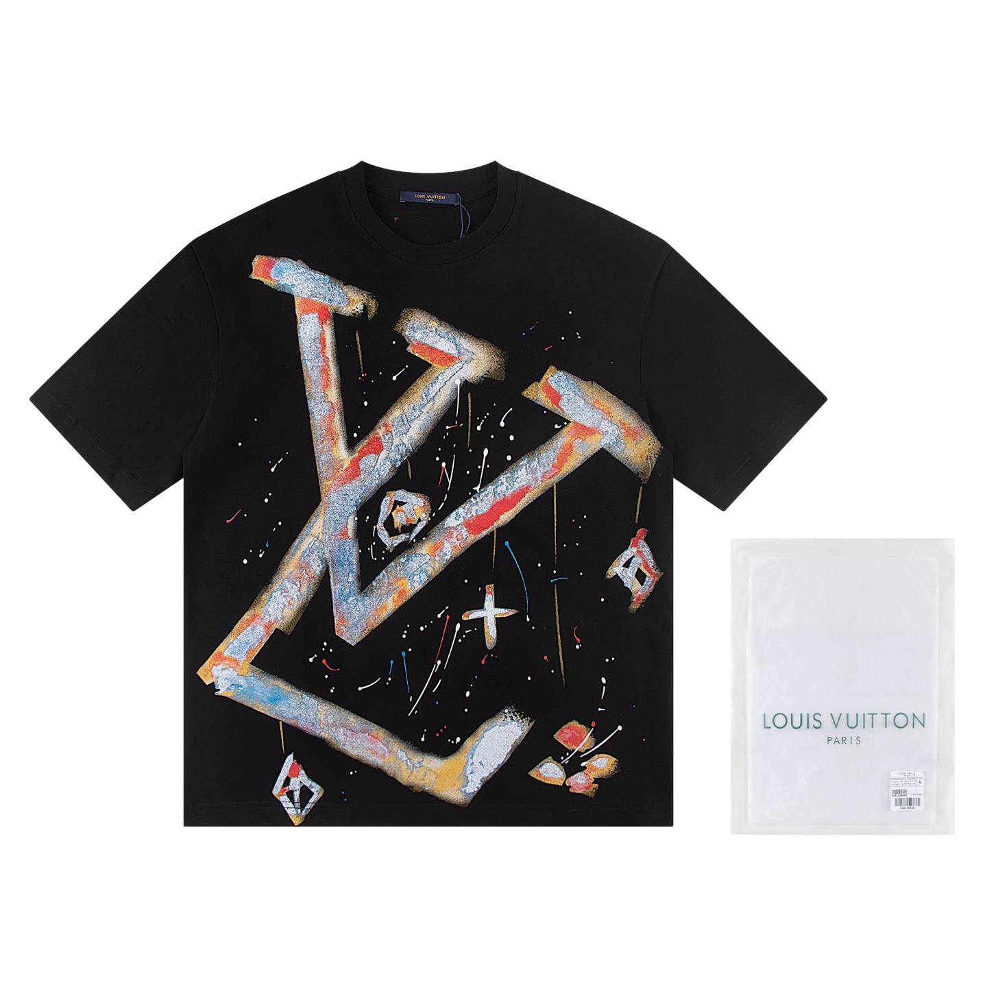 本頁精選來自高仿等級的LV彩繪系列黑T,整體版型寬鬆不貼身,適合春夏多場景穿搭。胸前以藝術噴筆手法描繪巨型LV字母,結合潑墨風格極具視覺張力。布料選用親膚彈性棉,厚薄適中,手感柔和無異味。下擺與領口細節處理講究,穿起來俐落有型,無論單穿或疊搭都相當出色,是熱愛街頭風格朋友的首選單品。