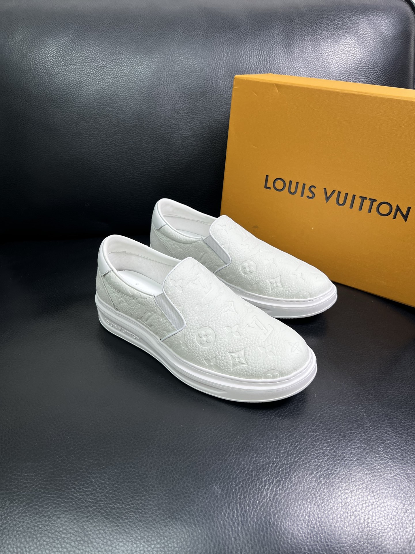 這款 LV 一比一白色壓花懶人鞋,以柔軟牛皮革打造,鞋面上自然浮現品牌經典 Monogram 壓紋,低調中展現高級質感。內裡舒適透氣,鞋底輕盈耐磨,適合日常穿搭與長時間行走。許多顧客回饋此鞋穿著感非常合腳,簡單套入即可出門,無論搭配牛仔褲或休閒褲,都能突顯品味。對標正品的細緻工藝,帶來精品級穿著體驗。