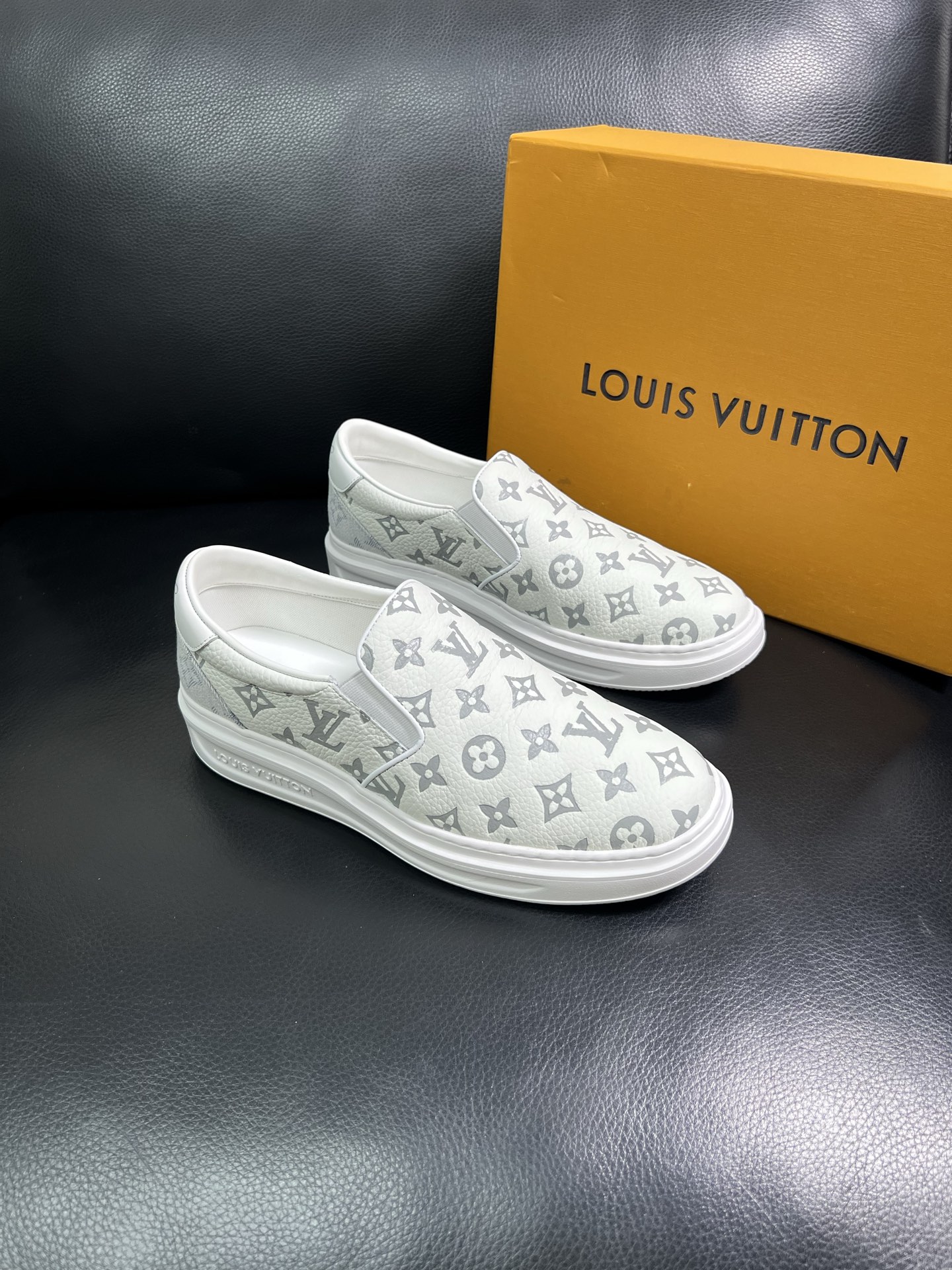 這款 LV 高仿灰白滿印懶人鞋,選用細膩牛皮革材質,鞋面覆蓋經典 Monogram 灰白圖案,展現俐落時尚感。懶人鞋設計方便穿脫,鞋底輕盈防滑,帶來舒適的日常穿著體驗。許多顧客回饋此鞋搭配休閒褲或牛仔褲皆能呈現低調奢華氣質。鞋內柔軟襯裡,確保長時間行走依舊舒適,是日常與旅行的可靠之選。