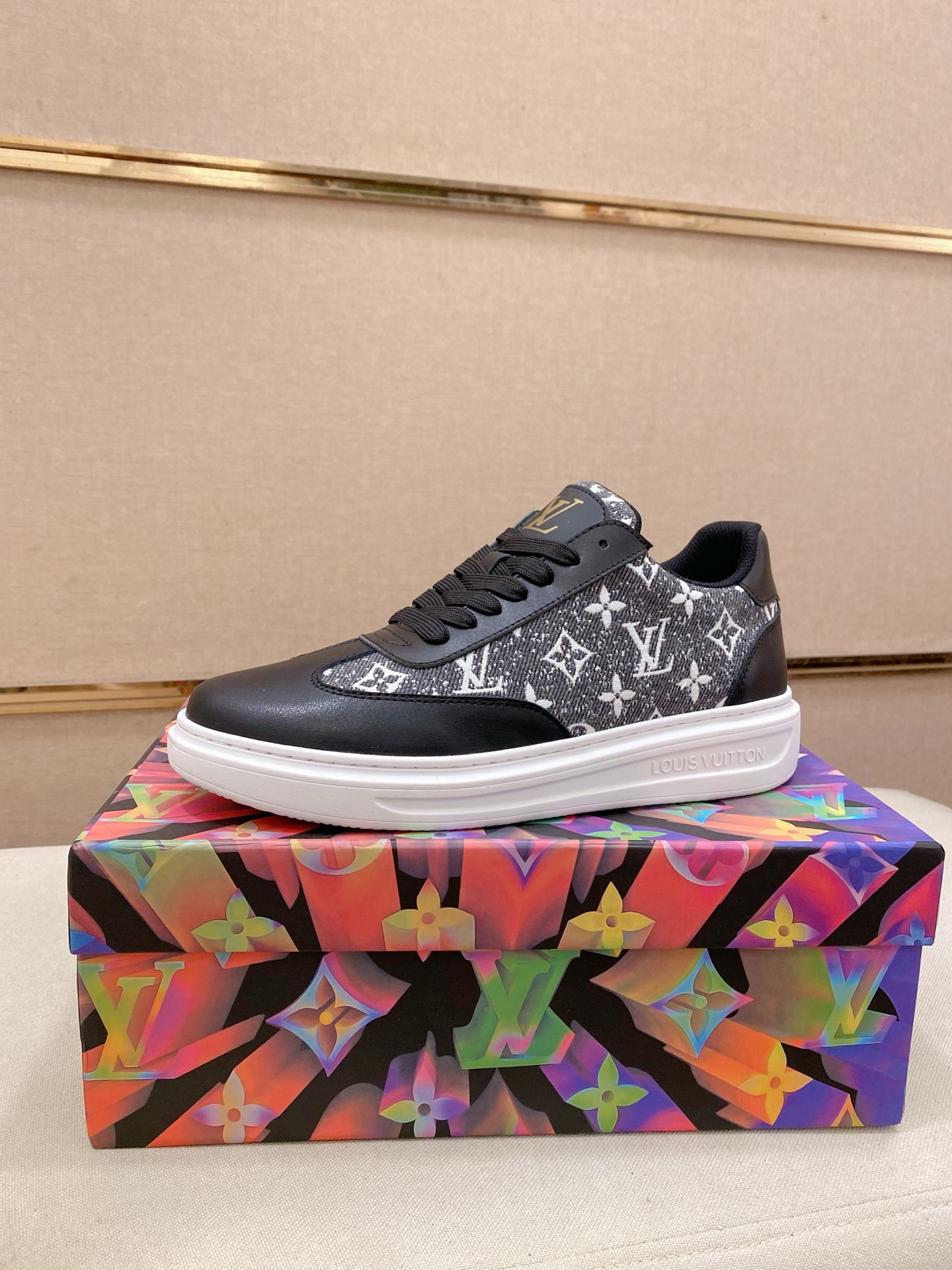 這款 LV 高仿 黑灰 Monogram 低筒運動鞋,以深灰帆布結合黑色皮革鞋面,搭配經典 Monogram 提花,質感沉穩而不失時尚氣息。內裡透氣舒適,橡膠鞋底耐磨防滑,適合日常穿搭與休閒出行。無論搭配牛仔褲、運動褲還是休閒短褲,都能展現獨特的街頭潮流感。這雙鞋在做工與細節處理上對標原版,呈現出極高還原度。