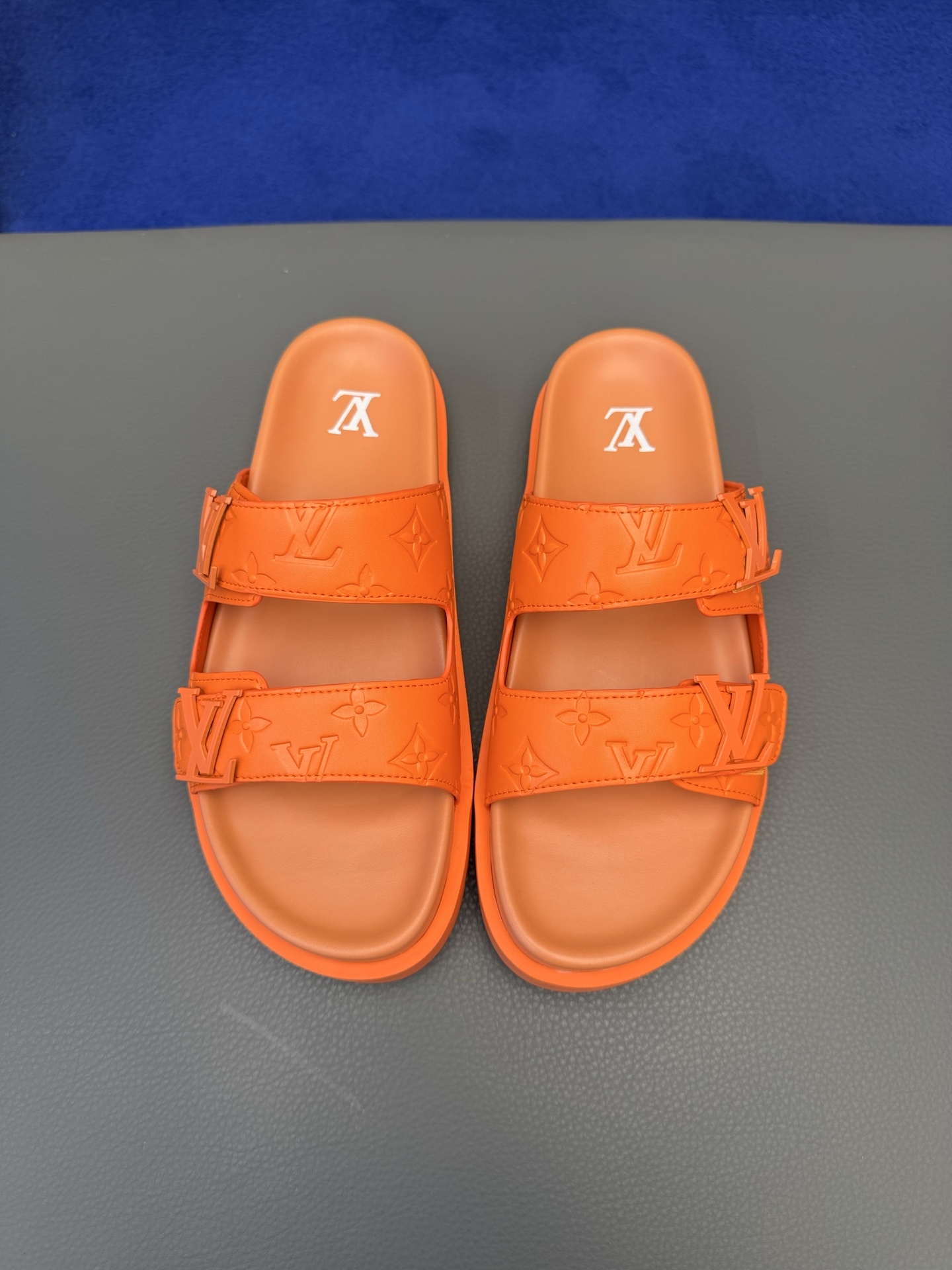 本商品採用LV品牌高仿等級技術打造,以鮮明橘色結合Monogram壓紋設計,呈現出夏日專屬的活潑氣息。雙帶式結構不僅提供穩固包覆力,穿著更顯腳背立體修長。根據眾多穿搭博主開箱評價,這雙高仿鞋子值不值得買?答案絕對肯定。外觀辨識度高、舒適度佳,無論日常通勤還是出國旅遊都非常實用,是夏天最值得收藏的亮色鞋款。