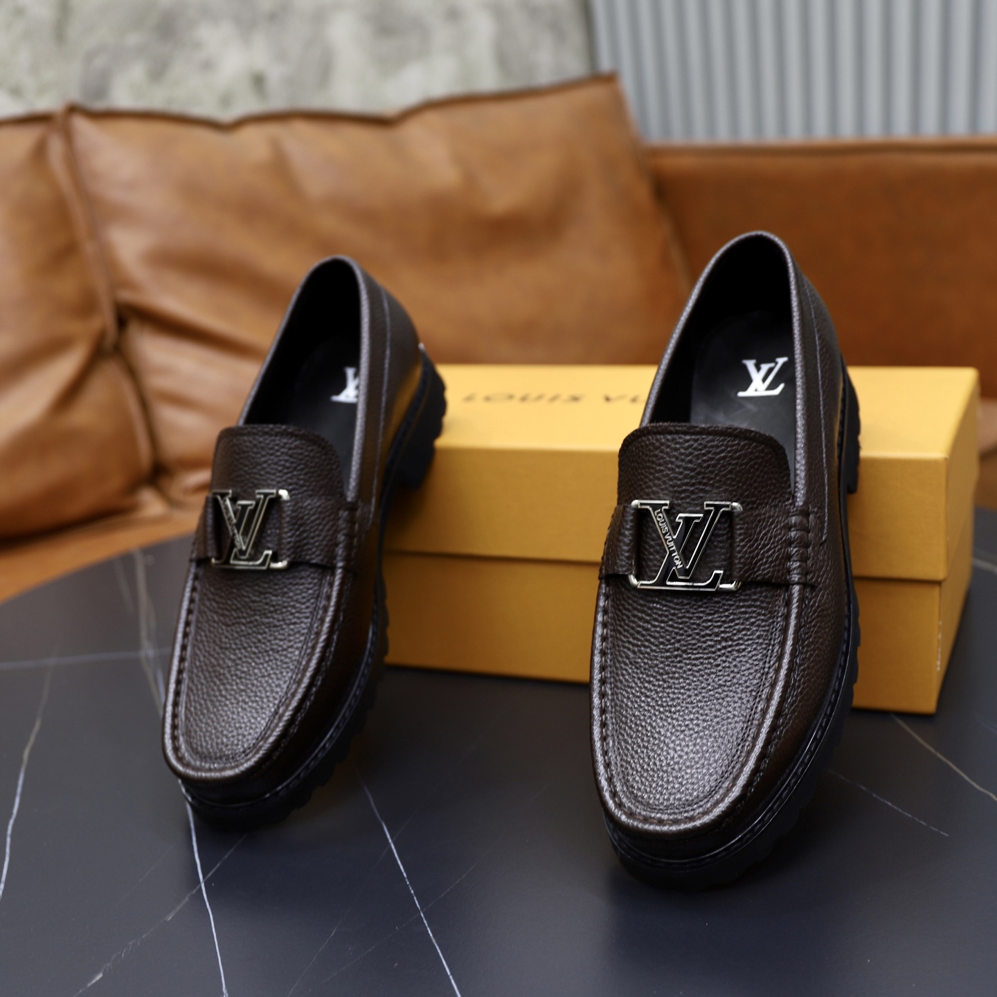 精選來自人氣熱銷款式,搭配性極高,不論男女皆適合。LV A貨咖啡色樂福鞋以柔軟牛皮打造,鞋面大 LOGO 金屬飾釦吸睛搶眼,搭配咖啡色皮面質感紋理,低調中帶出精品氣場,實搭性極高。推薦更多我剛剛看過類似商品