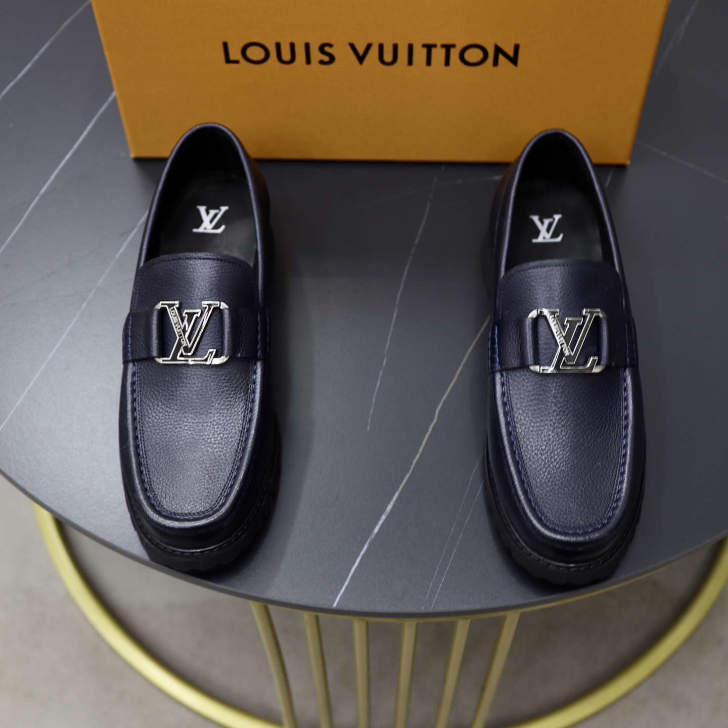 LV高仿深藍皮革樂福鞋大Logo飾釦俐落造型男鞋