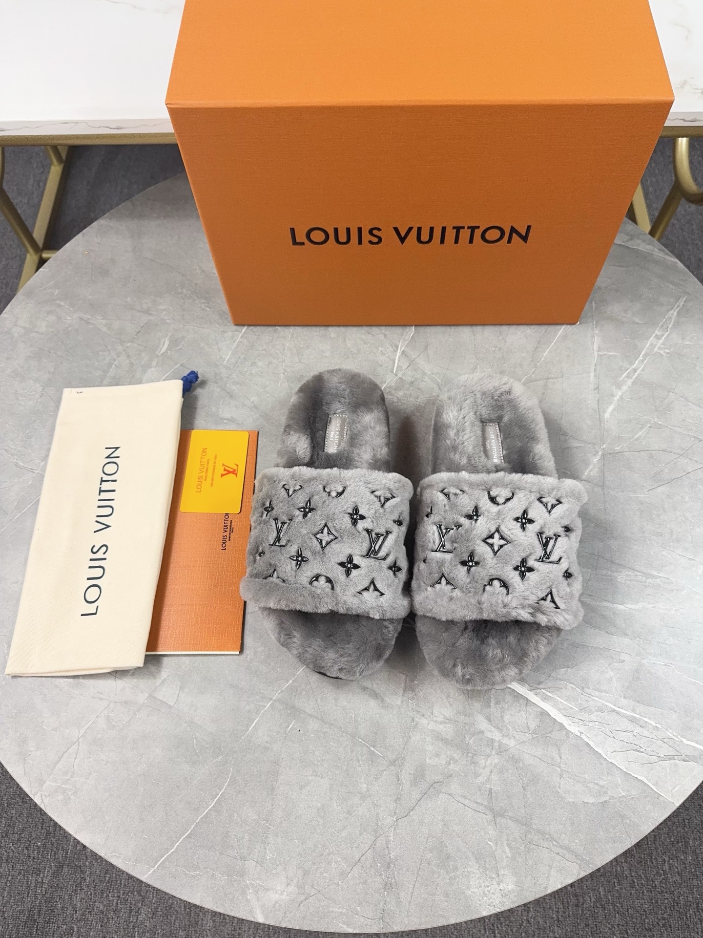 精選來自人氣熱銷款式,搭配性極高,不論男女皆適合。LV高仿女款毛毛拖鞋以灰色絨毛打造,鞋面點綴Monogram圖案,外型大方簡約。內裡柔軟親膚,實穿舒適度高,多位顧客回饋表示長時間穿著依然透氣。鞋底防滑設計安全可靠,無論居家或外出皆能輕鬆駕馭,是一款極具實用性的高仿鞋。