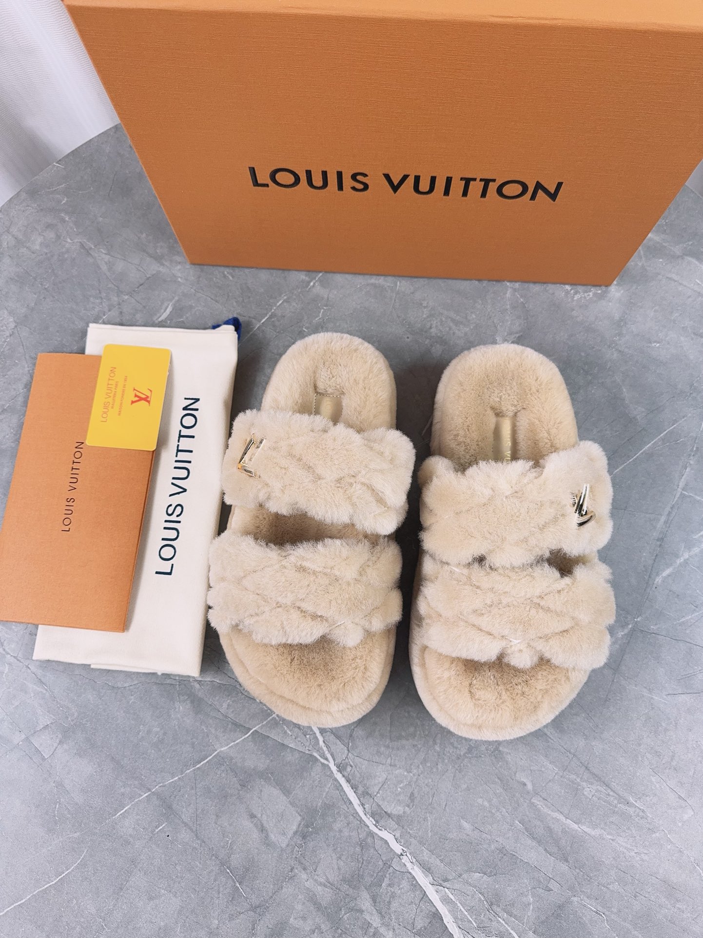 本商品採用高質感羊羔毛材質製作,雙帶交織設計展現立體層次感。LV高仿毛毛拖鞋以簡約大方的輪廓,搭配金屬小LOGO裝飾,低調卻精緻。多位客人回饋,實際穿著腳感柔軟舒適,適合室內外穿搭。鞋底防滑設計有效提升安全性,是冬季出門與居家必備的理想鞋款。 商品說明: