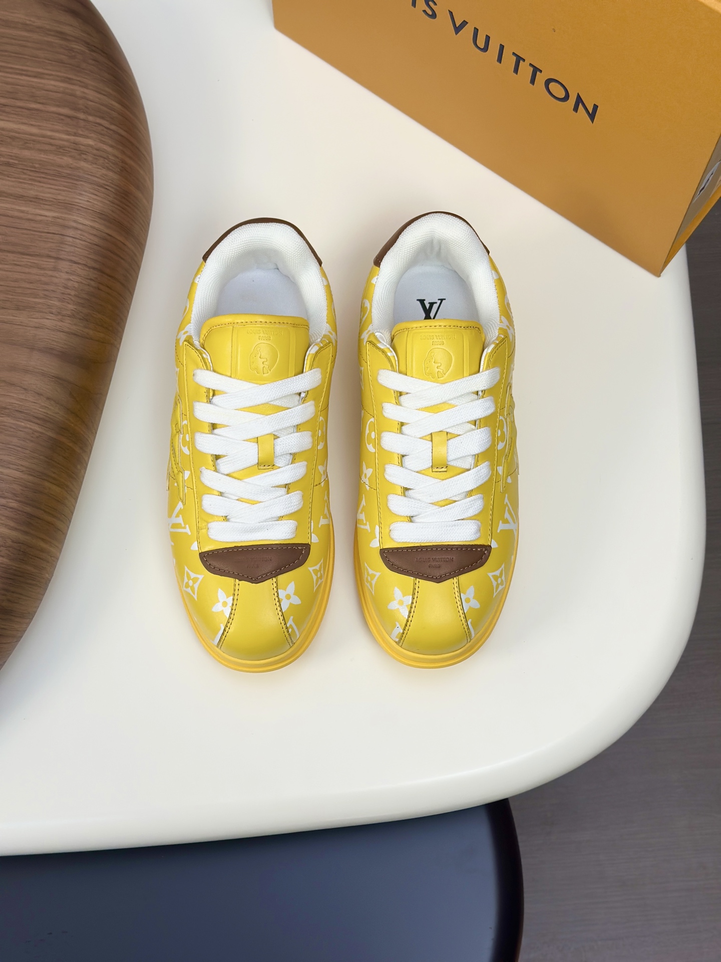 選色與造型皆為今年流行趨勢,適合日常與正式場合。這款LV原單黃色Monogram男女款球鞋,以鮮明黃色結合經典老花圖騰,展現活潑卻不失高級感的氛圍。鞋面皮革光澤自然,質感細膩,鞋底具備良好回彈力與耐磨性,長時間穿著依舊舒適。客人回饋「實物比照片更亮眼,搭配後造型感立刻升級」,獲得極佳口碑。從鞋舌Logo到車縫細節,皆展現原單等級工藝。這雙鞋不僅外觀吸睛,實用性更高,是潮流與舒適並存的精品鞋履。