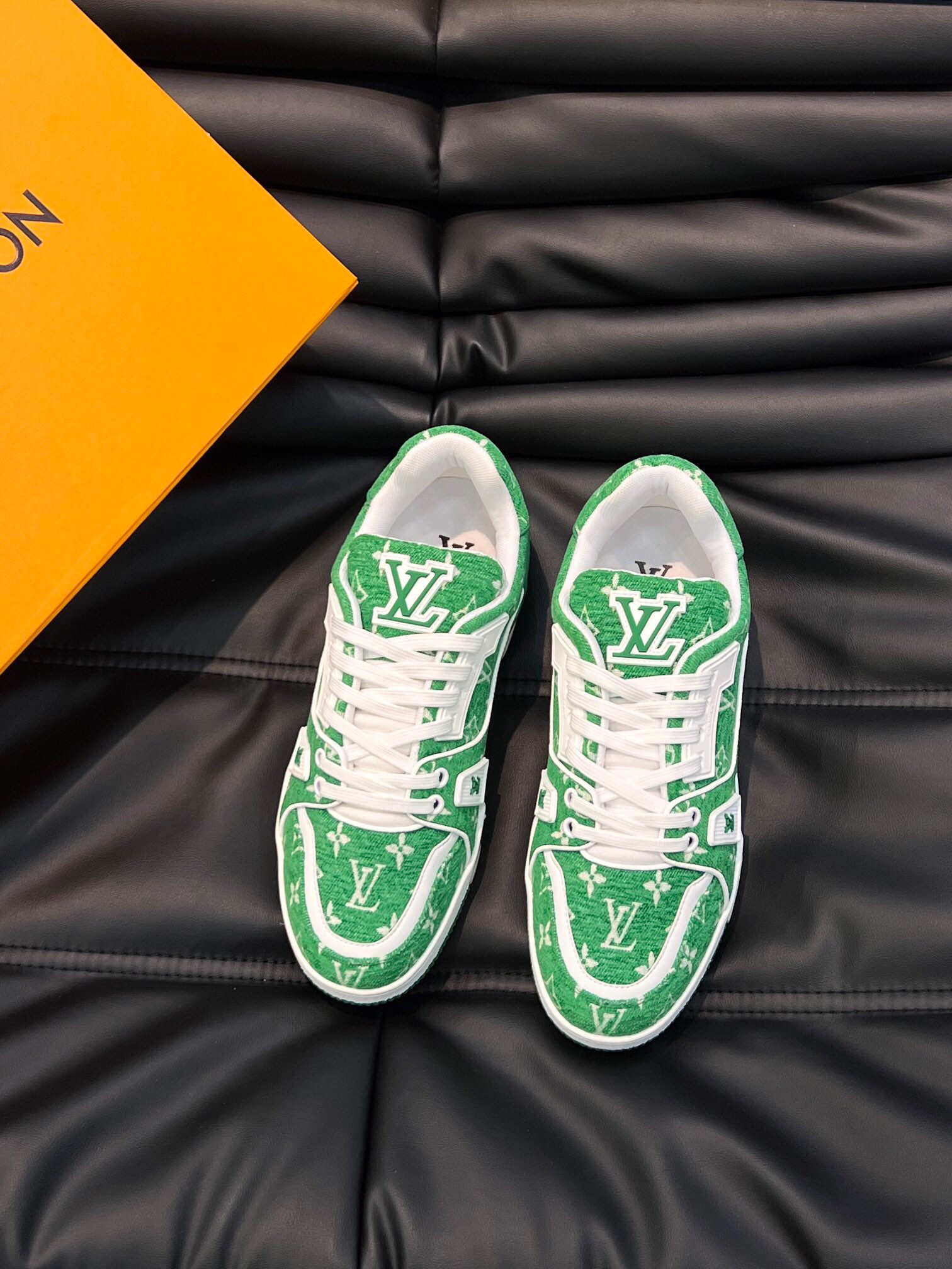 擁有正品外觀、售價親民,出門三次都被朋友誤認正品。這款LV高仿綠色Monogram男女款運動球鞋,以鮮明綠色帆布搭配經典老花元素,呈現出活潑又具潮流感的設計。鞋面拼接材質兼顧透氣與舒適,鞋底具備良好耐磨度與回彈力,適合長時間行走。客人回饋「鞋子顏色非常搶眼,穿上後整體造型感立即升級」,獲得廣大好評。從鞋舌大Logo到縫線收邊細節,皆展現高仿等級的精緻做工,是街頭穿搭與潮流搭配的首選鞋款。