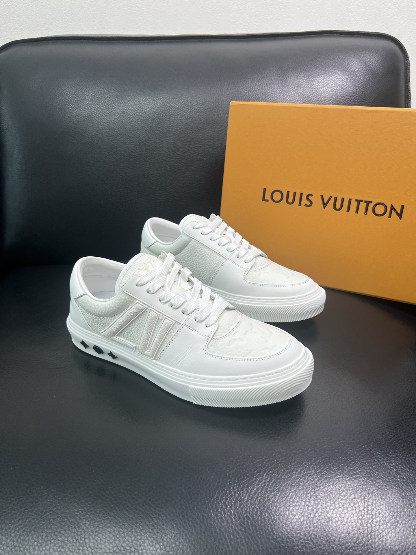 這款 LV 高仿純白休閒鞋以極簡設計為主題,展現純粹時尚感。鞋身採用全白荔枝紋牛皮搭配細緻車縫線,細節還原度高,對標原版質感。鞋側飾有低調的 LV 標誌,鞋底星花點綴讓簡約中更顯精緻。柔軟鞋墊與透氣內襯設計,提供全天舒適穿著體驗。全白配色不挑場合,無論休閒、通勤或出遊都能完美搭配。買家評價此款高仿鞋穿著感極佳,搭配牛仔褲或運動褲皆能展現時髦氛圍。